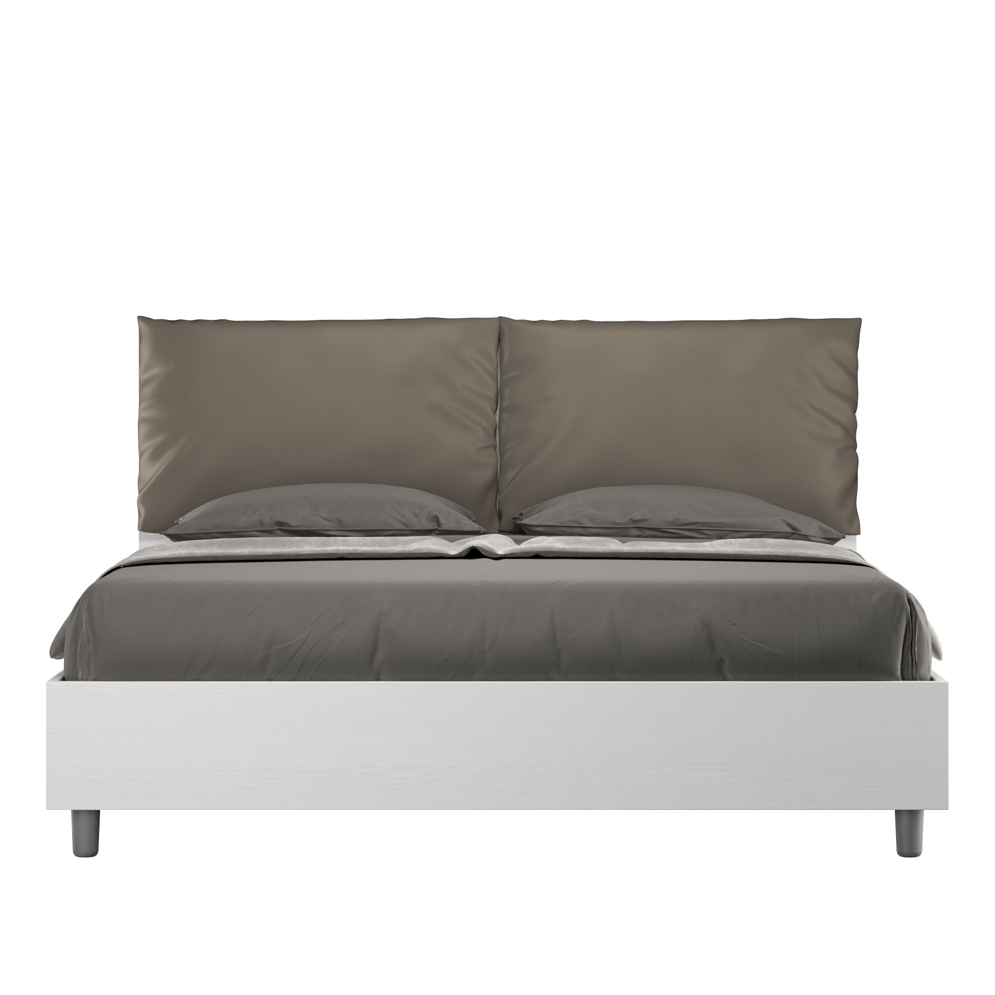 Lit queen size 160x200 Egos Antea avec tête de lit et cadre de lit en panneaux mélaminés, coussins revêtus de similicuir, particulièrement polyvalent et facile à assortir à tout style de décoration.