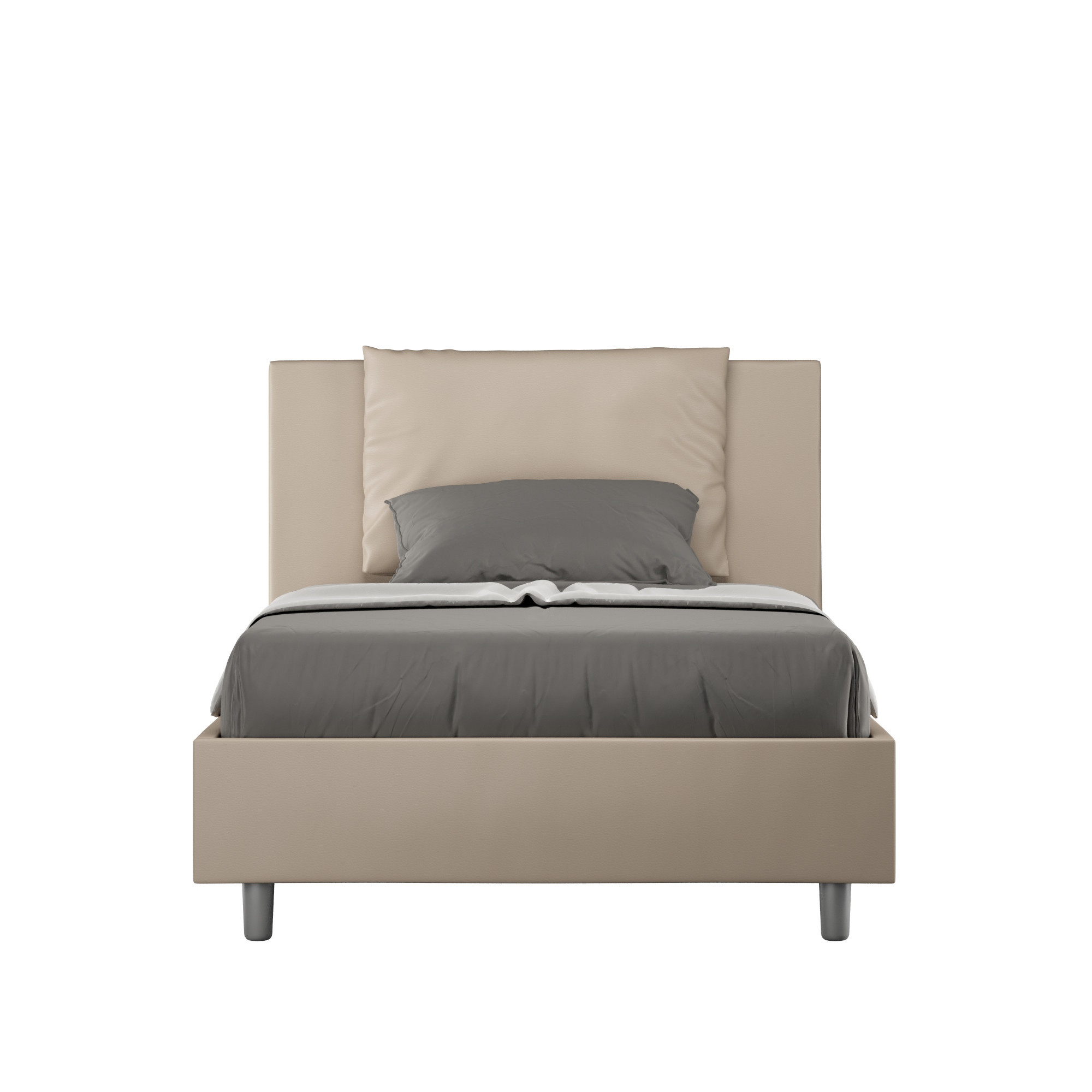 Le lit coffre 1 place et demi 120x190 Antea est caractérisé par un style élégant et raffiné grâce aux grands coussins présents sur la tête de lit, il est entièrement revêtu en similicuir.