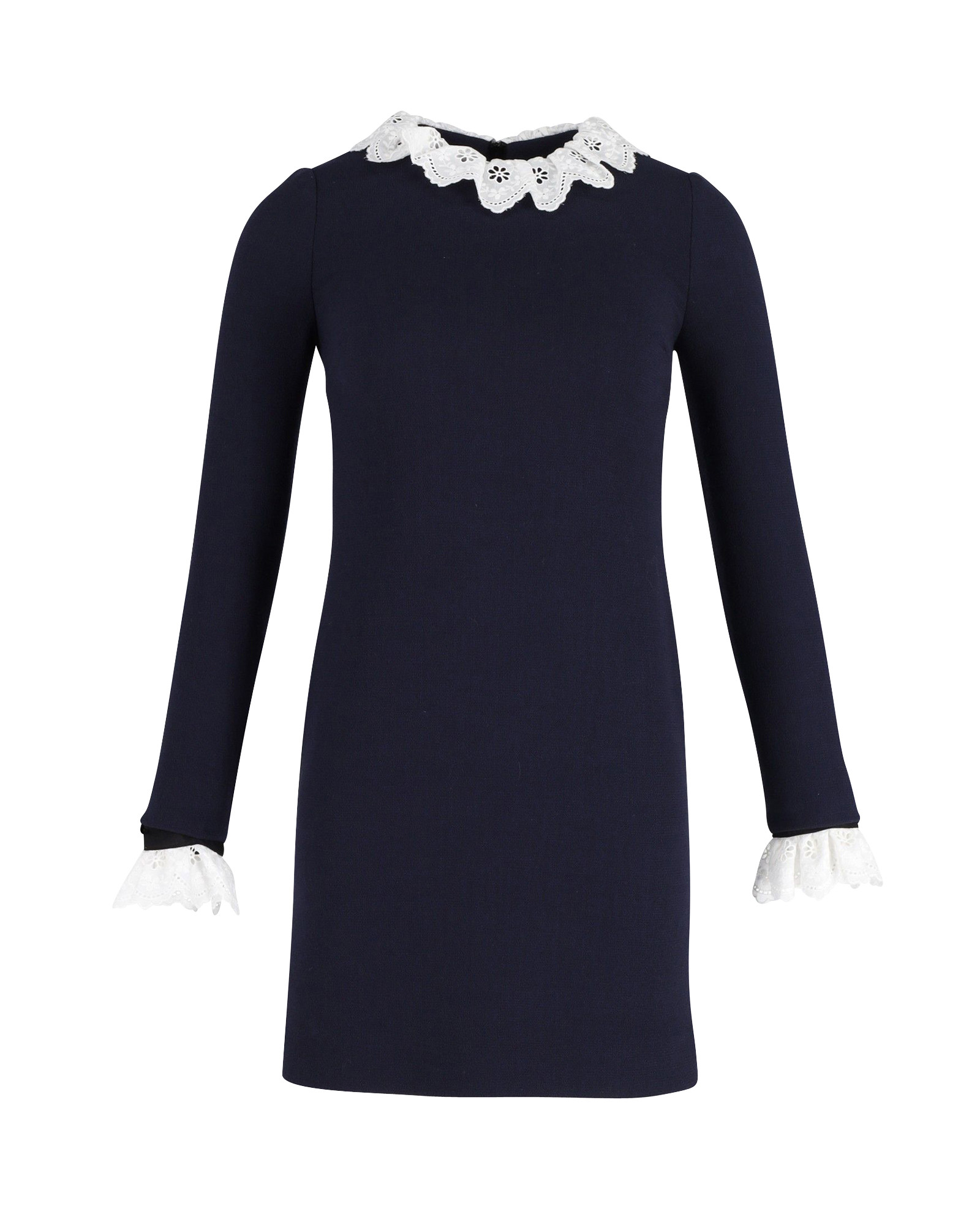 Victoria Beckham Mini-robe droite à finitions en broderie anglaise en laine bleu marine