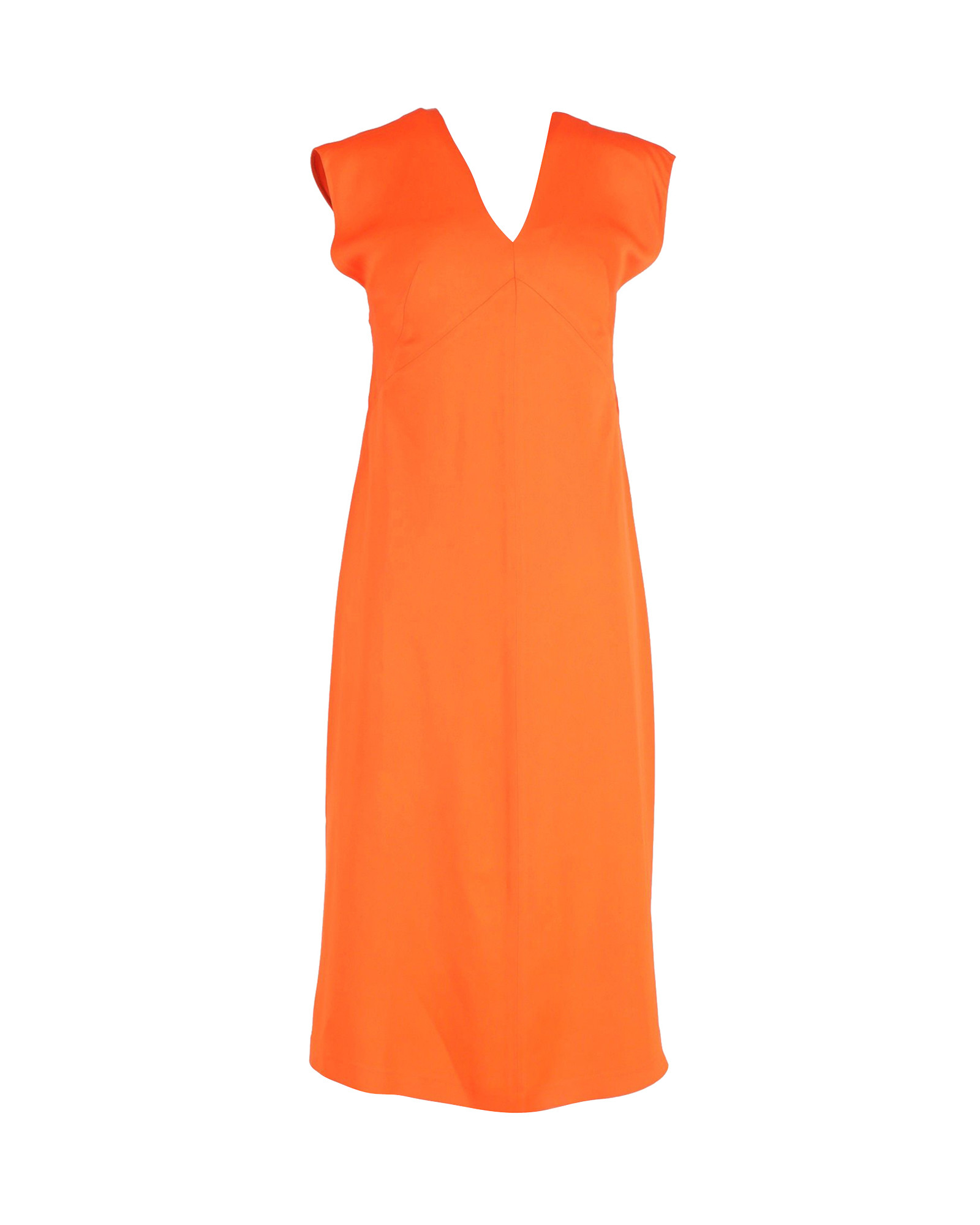 Une robe midi sophistiquée mais classique, confectionnée dans un tissu en viscose léger et présentant une coupe trapèze. Une fermeture zippée dissimulée à l'arrière offre une finition élégante. Portez-le avec des bottes hautes et un fourre-tout surdimensionné pour un look chic par temps frais. Robe Joseph à col en V en viscose orange État : excellent Signe d'usure : non UGS : 324337 Couleur orange Matériau : Fibre de cellulose | Viscose Taille : FR34