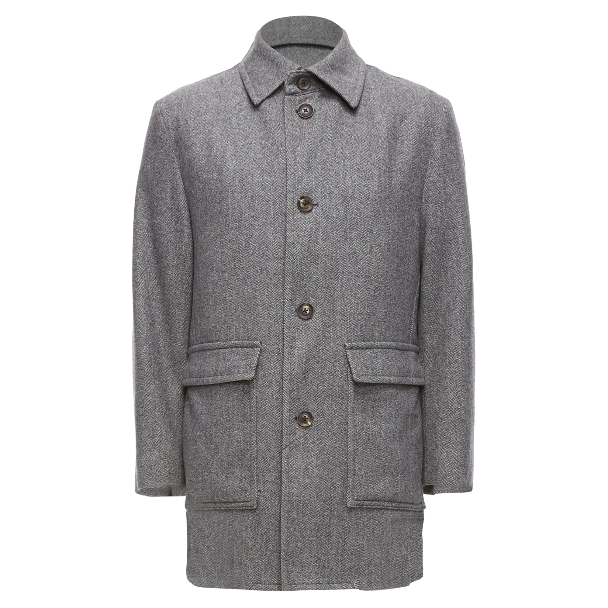 Manteau à double poche LANVIN JL en laine mélangée grise à chevrons IT46 SRéférence : JSLE/A00103Marque : LanvinCréateur : Alber ElbazCollection : JLMatériau : Laine, mélangeCouleur : GrisMotif : UniFermeture : BoutonDoublure : Tissu bordeauxFabriqué au : JaponÉTAT :État : Très bon, cet article était d'occasion et est en très bon état. Veuillez vous référer à la galerie d'images pour un contrôle complet de l'état. Piqûre de mite sur l'ourlet droit près de la poche.Livré avec : Code style présent (générique) TAILLETaille du créateur : IT46Référence taille : EU46 / FR46 / IT46 / UK36 / US36 / SRemarque sur la taille : cet article a pu être modifié. Veuillez vous référer aux mesures du produit. MESURES : Épaule à épaule : 45 cm / 17,6" Poitrine : 53 cm / 20,7" Taille : 50 cm / 19,5" Hanche : 52 cm / 20,3" Longueur : 80 cm / 31,2" Longueur des manches : 59 cm / 23" Mesures : longueur : 800 mm
