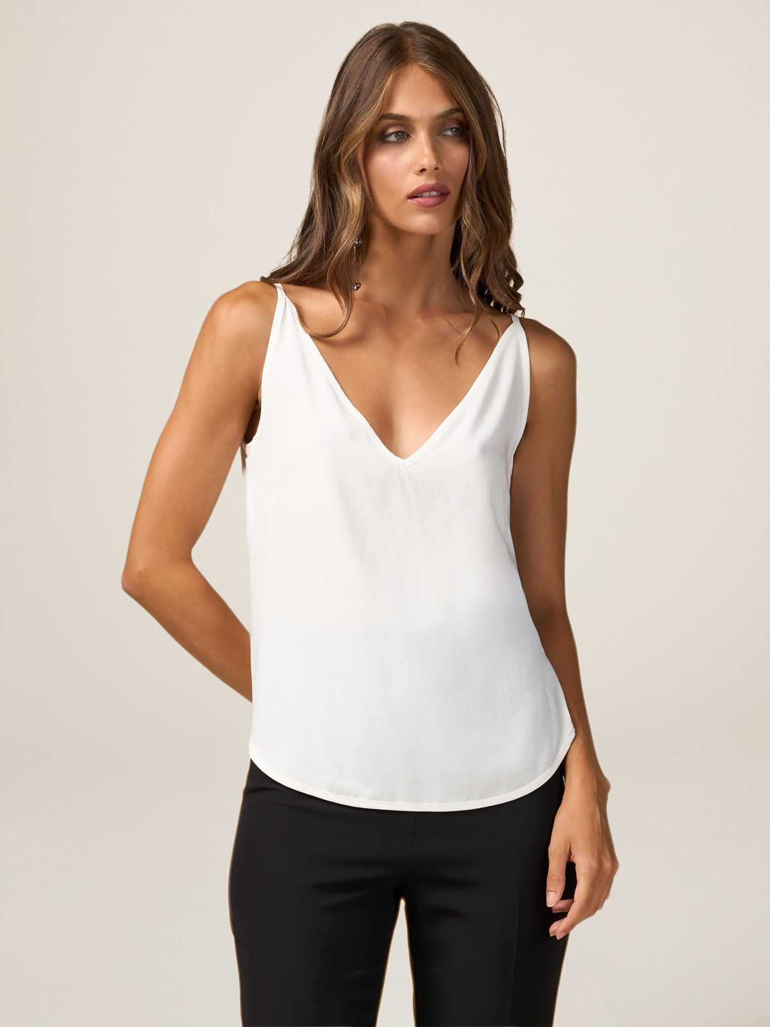 Top en satin 100 % viscose ; col en V ; MADE IN ITALY.