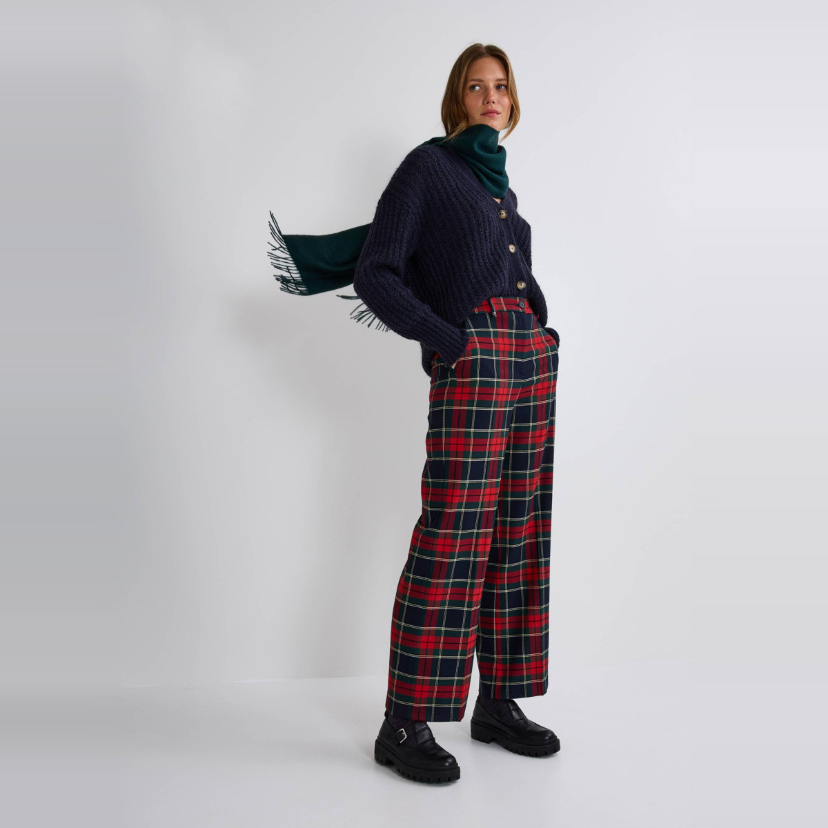 Pantalon large à carreaux - MONOPRIX