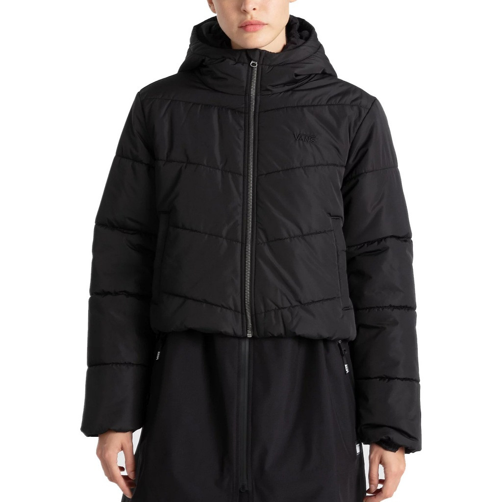 Modèle MTE FOUNDRY CROP PUFF de marque Vans Noir Black Doublure Textile. Extérieur Textile. Type de construction: Cousu. Fabrique en Vietnam.