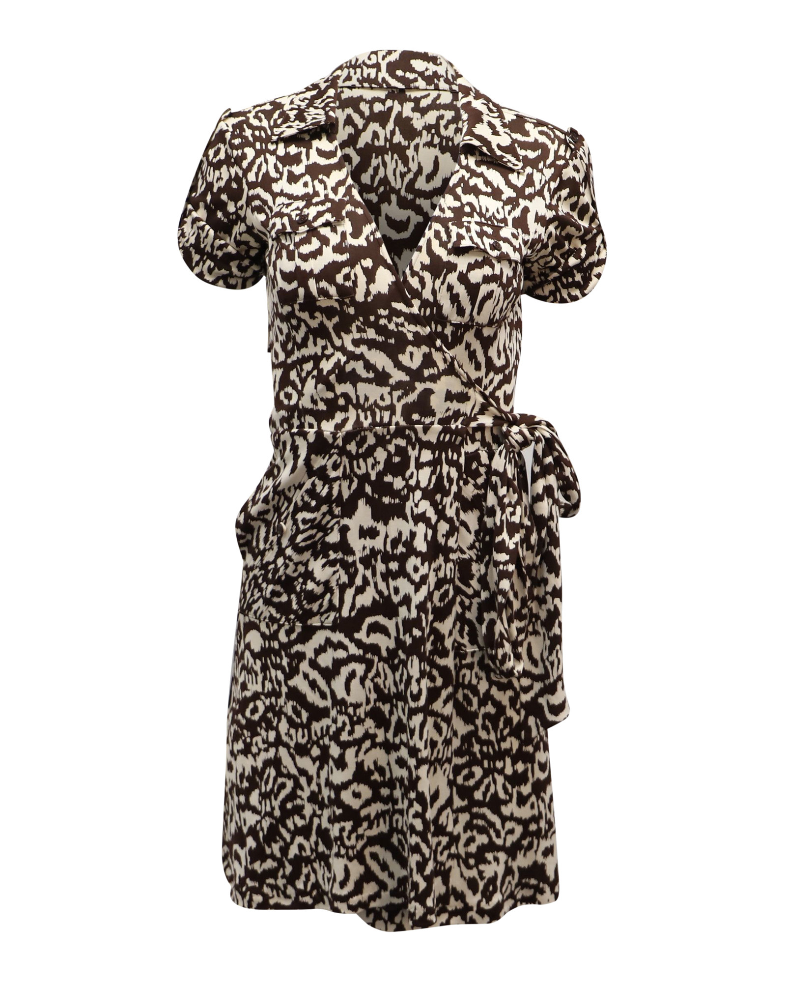 Robe portefeuille imprimée Diane von Furstenberg en soie marron et crème