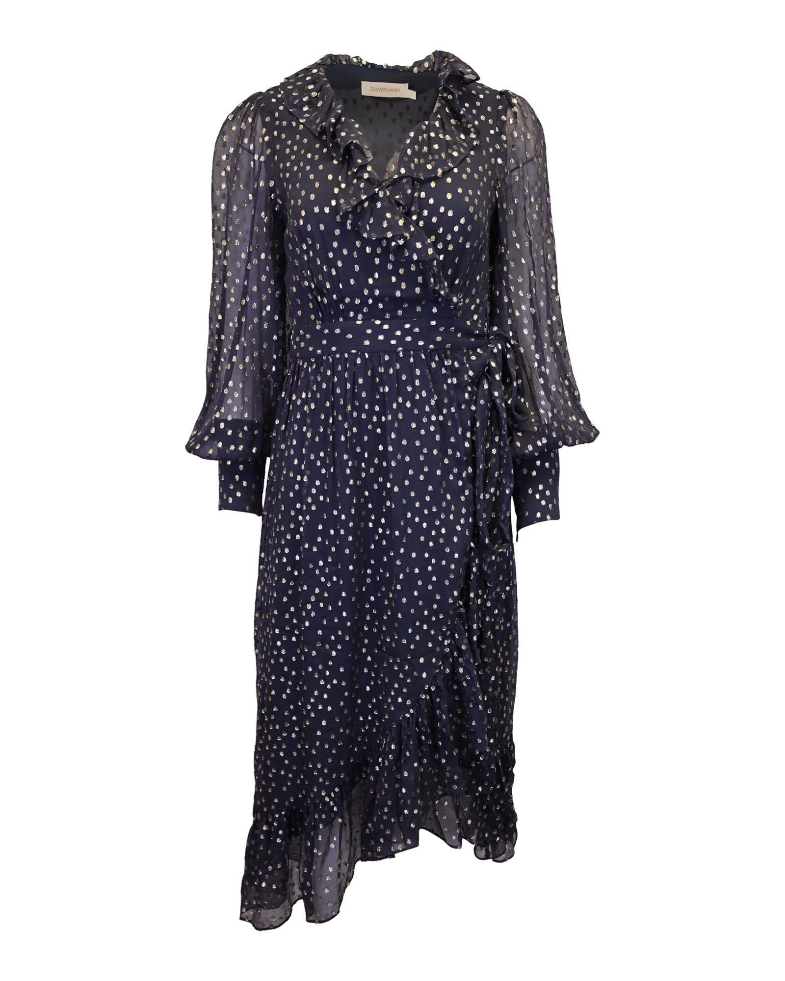 Robe Midi à Volants Zimmermann en Mousseline de Soie Mélangée Fil Coupé Bleu Marine Métallisé