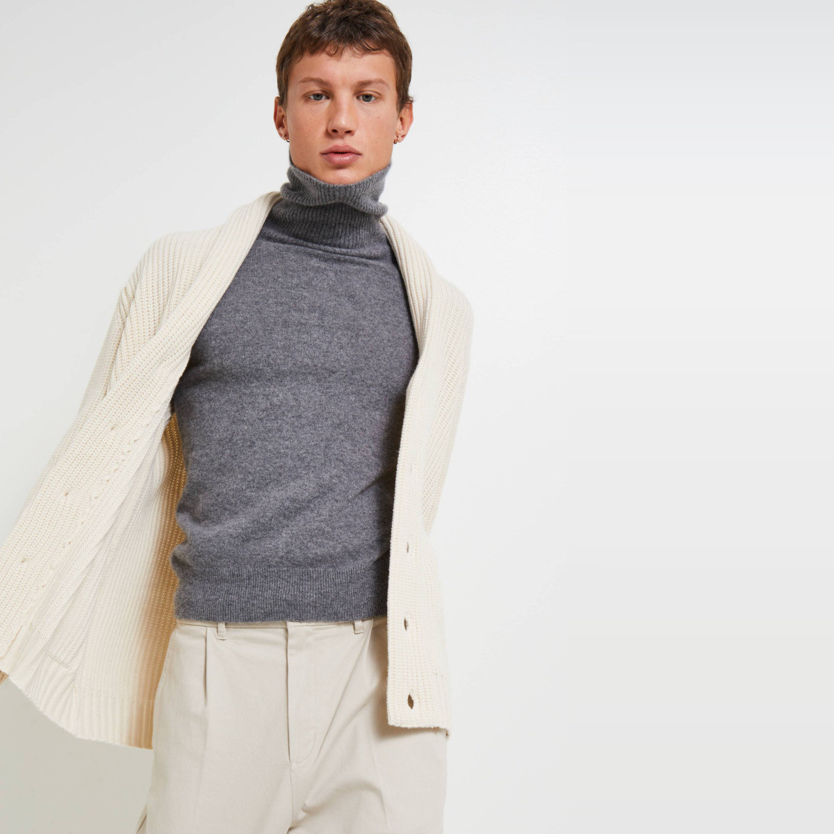 Le mannequin mesure 1m79 et porte une taille L.