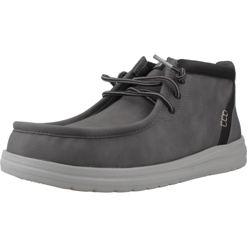 Modèle WALLY MID GRIP R CLASSIC de marque Hey Dude Gris Doublure Textile. Extérieur Scission. Type de construction: Coincé. Fabrique en Chine.