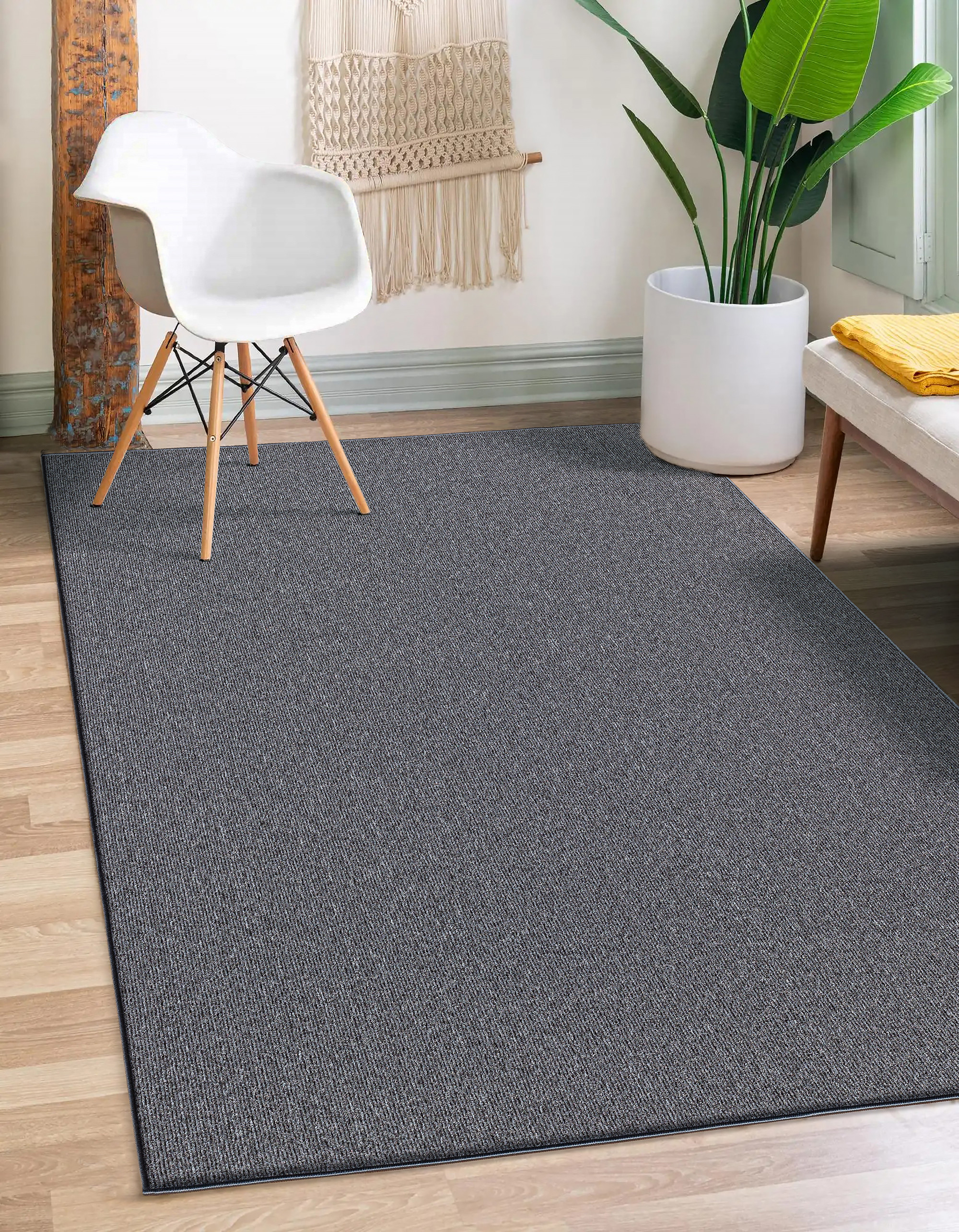 Tapis Natal moderne uni salon, cuisine, antisalissure, Anthracite