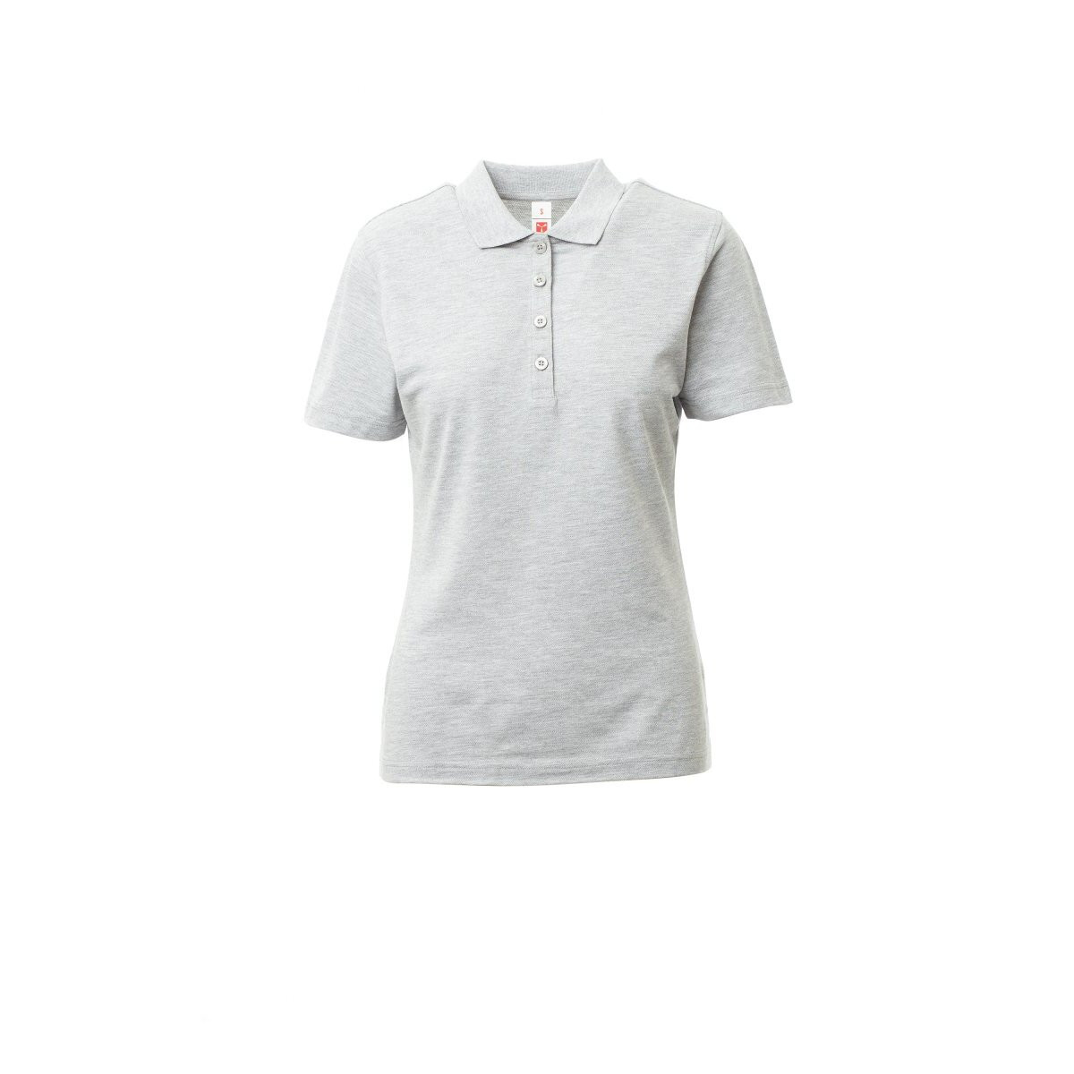 Polo cintré pour femme à manches courtes, avec 4 boutons assortis effet nacré, fentes latérales, coutures du col couvertes d'une bande assortie. - Composition: 93% COTON + 7% VISCOSE - Aspect: PIQUET - Poids: 185 GR/MQ - Emballage: 5/50