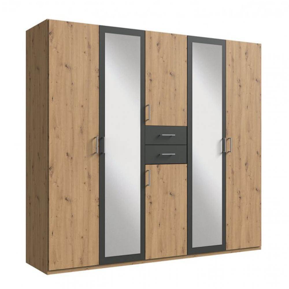 imitation chêne artisan, 2 portes avec miroirs, 2 tiroirs centrales graphites.