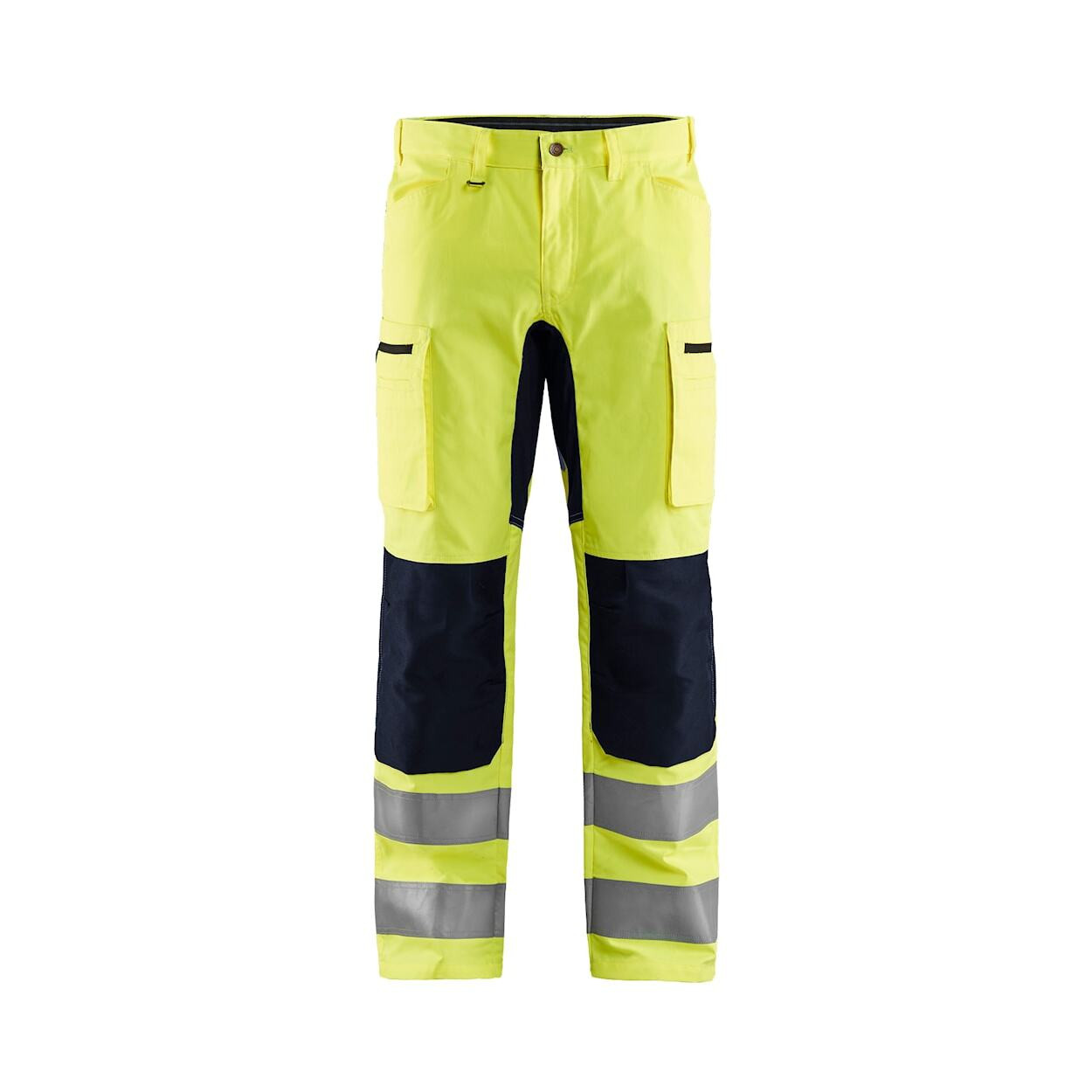 Pantalon de travail haute-visibilité avec parties stretch à l'entrejambe, au dos et renforcement CORDURA® stretch aux genoux pour un confort optimal. Certifié EN ISO 20471 standard, Classe 2. TISSU - 65% polyester, 35% coton croisé, finition hydrofuge 240 g/m² ATOUTS - Parties stretch à l'entrejambe, hanches et genoux - Genoux préformés RENFORCEMENT - Poches genouillères stretch renforcées en Cordura® DÉTAILS - Braguette plastique - Anneau en D à la taille POCHES - Poches arrières - Poche jambe à soufflet, avec fermeture éclair, poche stylo et compartiment couteau - Poches à l'italienne - Poches genouillères - Poche intérieure pour téléphone VISIBILITÉ - Bandes réfléchissantes 70 mm, Bandes réfléchissantes autour des jambes