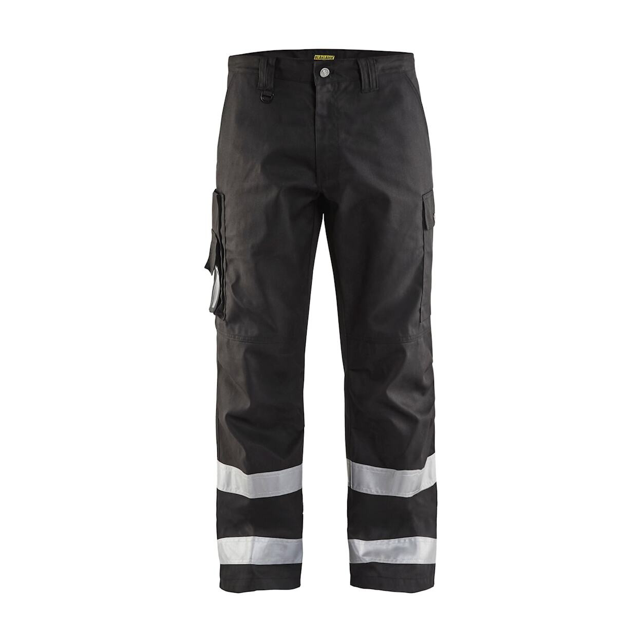 Pantalons avec les genoux préformés et de nombreuses poches. Contient un porte-badge et une poche pour téléphone. Bandes réfléchissantes de 50mm. TISSU - 65% polyester, 35% coton croisé, finition hydrofuge 240 g/m² ATOUTS - Matériau imperméable résistant - Genoux préformés DÉTAILS - Braguette plastique - Passants avec anneau porte-clés - Boutons métalliques - Poche pour badge identifiant - Surface appropriée pour marquage POCHES - Poches arrières à rabat et fermeture à bouton - Poche jambe avec soufflet et rabat, Poche jambe avec soufflet, poche téléphone et poche stylos VISIBILITÉ - Bandes réfléchissantes 50 mm, Bandes réfléchissantes autour des jambes