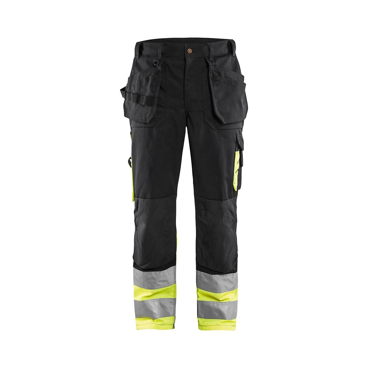 Pantalon haute visibilité avec renforcements en Cordura® pour une meilleure résistance aux accrocs. Conforme à la norme EN ISO 20471 classe 1. Visiblement artisan ! Tissu - 100% coton croisé, 370 g/m² Matière - 100% Coton, Matière fluorescente 85% polyester et 15% coton Renforcement - Renforcé avec du CORDURA® sur sections exposées Détails - Boucle porte-marteau latérale - Passants avec anneau porte-clés - Poche pour badge identifiant Poches - Poches arrières à soufflet - Poche jambe avec poche stylos, poche supplémentaire et poche téléphone - Poches avant à soufflet - Poches genouillères - Poches flottantes renforcées comprenant poches ciseaux et passants porte-outils escamotables dans les poches avant à soufflet - Poche mètre avec porte couteau et poche stylo Visibilité - Bandes réfléchissantes 70 mm, Bandes réfléchissantes autour des jambes