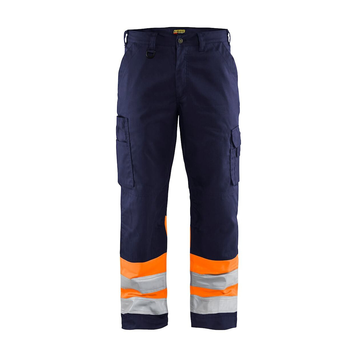 Pantalon haute-visibilité léger et robuste ;avec performances hydrofuges. ;Grande résistance à la déchirure, performance élevée à l'abrasion et poches jambes spacieuses : le pantalon 1564 est le choix idéal pour le travail intense. ;Certifié selon normes EN 20471 vêtement Haute-Visibilité. Tissu - 65% polyester, 35% coton croisé, finition hydrofuge 240 g/m² Lavage - Lavage industriel EN ISO 15797 Détails - Braguette plastique - Passants avec anneau porte-clés - Triple couture à l'entrejambe - Poche détachable pour badge identifiant Poches - Poches arrières - Poche jambe comprenant poche supplémentaire et poche stylos, Poche jambe avec soufflet, rabat et poche stylos, poche supplémentaire, poche téléphone et poche pour badge identifiant - Poches genouillères internes - Poches en biais Finition - Ourlet à découdre pour extension de 5 cm Visibilité - Bandes réfléchissantes 60 mm, Bandes réfléchissantes autour des jambes