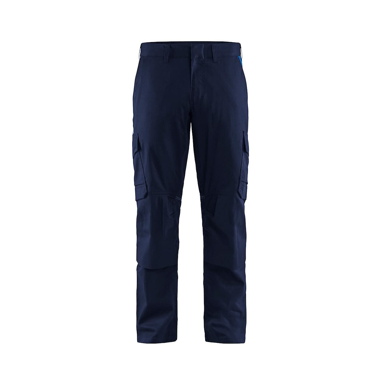 Ce pantalon fait partie de la nouvelle collection de vêtements de travail stretch de Blåkläder. Adapté au lavage industriel, ce pantalon sans rayures est entièrement fabriqué en stretch 2-directions et possède une bande élastique à la taille pour plus de confort. Poche intérieure pour mètre, poche de sécurité zippée et boutons-pression. Pantalon très fiable. Les détails réfléchissants offrent une visibilité supplémentaire au besoin. Fonctionnalités cachées pour éviter les rayures des surfaces. TISSU - 63% polyester, 33% coton, 4% élastoléfine, twill, stretch, 260 g/m² LAVAGE - Lavage industriel EN ISO 15797 ATOUTS - Stretch 2 directions, Résistant à la rayure - Genoux préformés DÉTAILS - Braguette plastique - Boutons-pression métalliques, Boutons cachés - Élastique à la taille - Triple couture à l'entrejambe - Anneau D POCHES - Poches arrières dont une à rabat - Poches jambes avec soufflet et rabat, boutons métalliques cachés - Poche zippée intérieure - Poches genouillères extérieures - Poche intérieure pour téléphone - Poche mètre intérieure VISIBILITÉ - Eléments réfléchissants sur les jambes