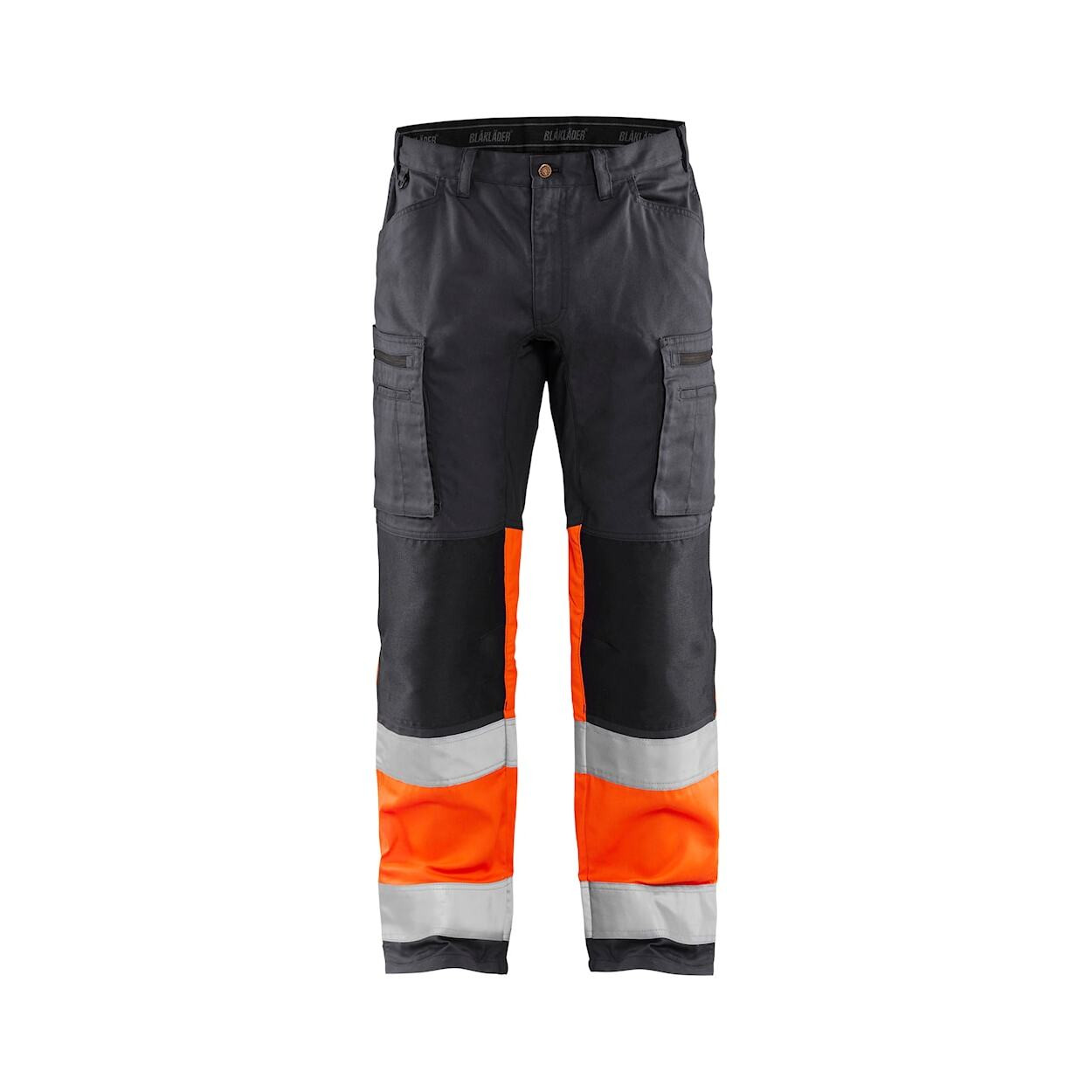 Pantalon haute visibilité avec des panneaux stretch et des poches genouillères en CORDURA® stretch pour un confort optimal. Certifié selon EN ISO 20471, classe 1. Poche genouillère adaptée aux genouillères 4027. +stretch signifie que certaines parties du tissu sont stretch Tissu - 65% polyester, 35% coton croisé, finition hydrofuge 240 g/m² Atouts - Parties stretch à l'entrejambe, hanches et genoux - Genoux préformés Renforcement - Poches genouillères stretch renforcées en Cordura® Détails - Braguette plastique - Anneau en D à la taille Poches - Poches arrières - Poche jambe à soufflet, avec fermeture éclair, poche stylo et compartiment couteau - Poches à l'italienne - Poches genouillères internes - Poche intérieure pour téléphone Visibilité - Bandes réfléchissantes 65 mm