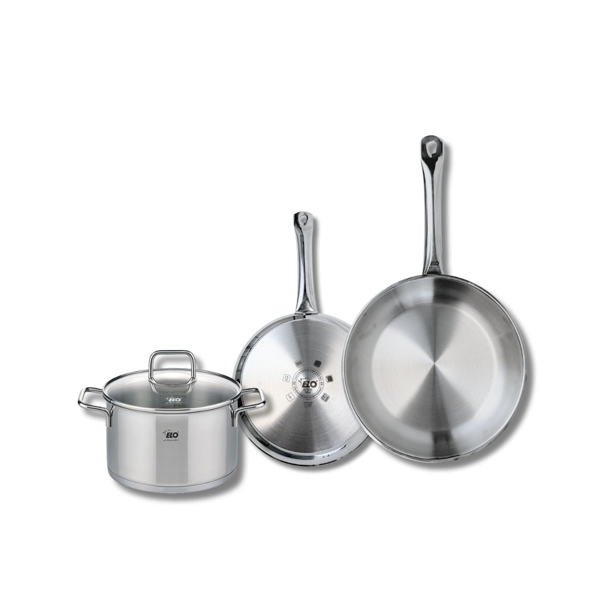 Set de 2 Poêles de cuisson 24 et 28 cm et 1 faitout 20 cm Elo Profi Citrin