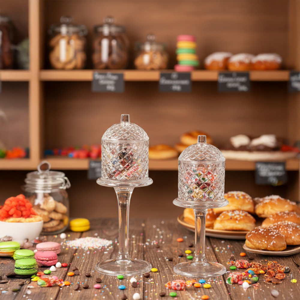 901117 - Bonbonnière en verre sur pied avec couvercle 10x33 cm- AULICA