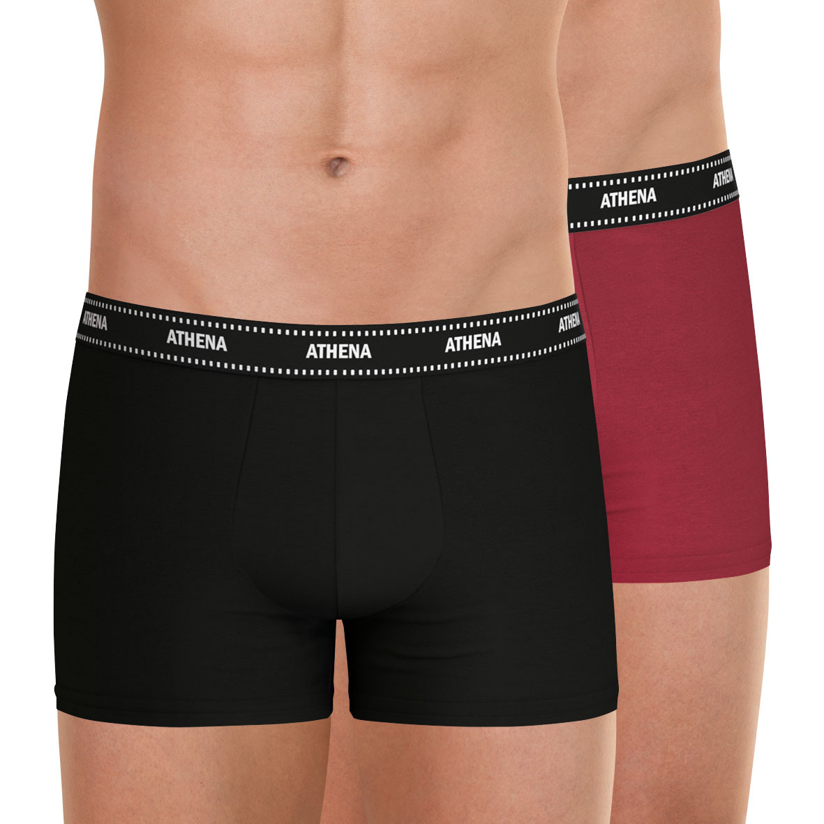 Caractéristiques de ces boxers DUO ESSENTIEL ATHENA HOMME Lot de 2 boxers Disponible en 2 coloris Composition : jersey 95% coton 5% élasthanne Coupe boxer moderne Ceinture 28mm Grandes tailles disponibles : existe jusqu'en taille 7 Label OEKO-TEX® standard 100 : garantit l'absence de substances nocives pour la santé Si vous êtes entre deux tailles : nous vous conseillons une taille au-dessus Prenez soin de votre linge et consommez moins d'énergie : Lavez à basse température (30) et privilégiez le séchage naturel.