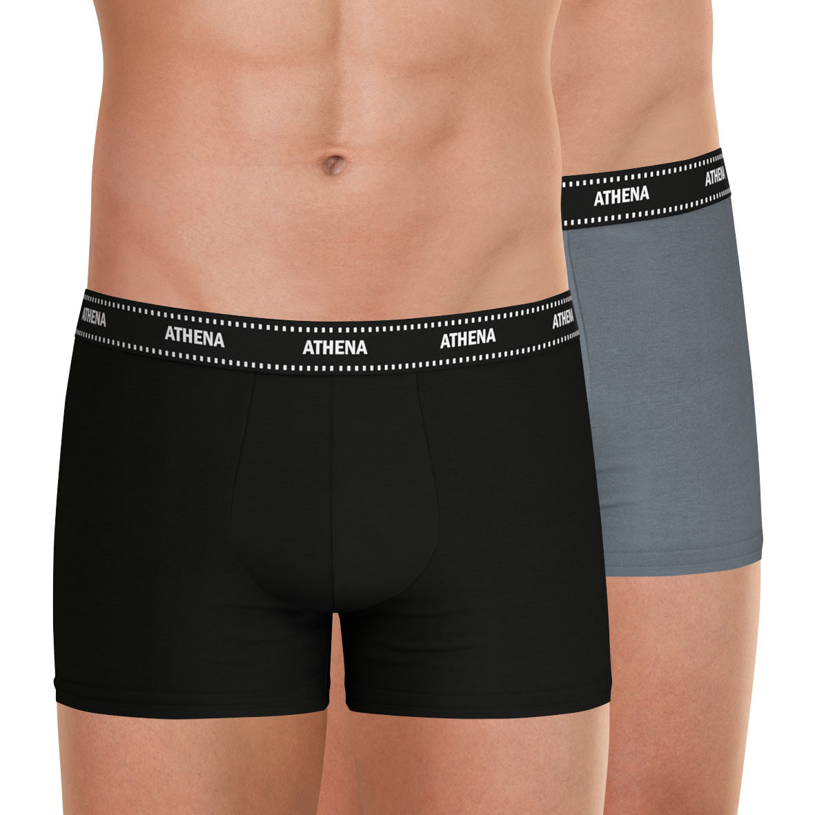 Caractéristiques de ces boxers DUO ESSENTIEL ATHENA HOMME Lot de 2 boxers Disponible en 2 coloris Composition : jersey 95% coton 5% élasthanne Coupe boxer moderne Ceinture 28mm Grandes tailles disponibles : existe jusqu'en taille 7 Label OEKO-TEX® standard 100 : garantit l'absence de substances nocives pour la santé Si vous êtes entre deux tailles : nous vous conseillons une taille au-dessus Prenez soin de votre linge et consommez moins d'énergie : Lavez à basse température (30) et privilégiez le séchage naturel.