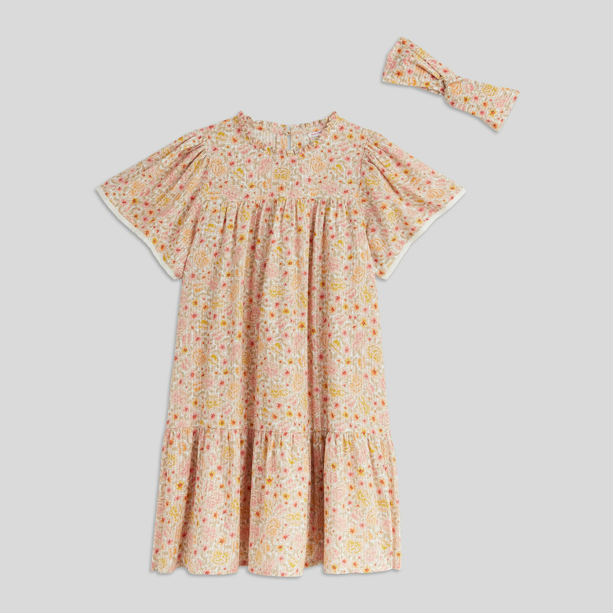 - Robe longue volantà•e àä manches courtes bouffantes àä imprimà• fleuri plus accessoire portà• cheveux