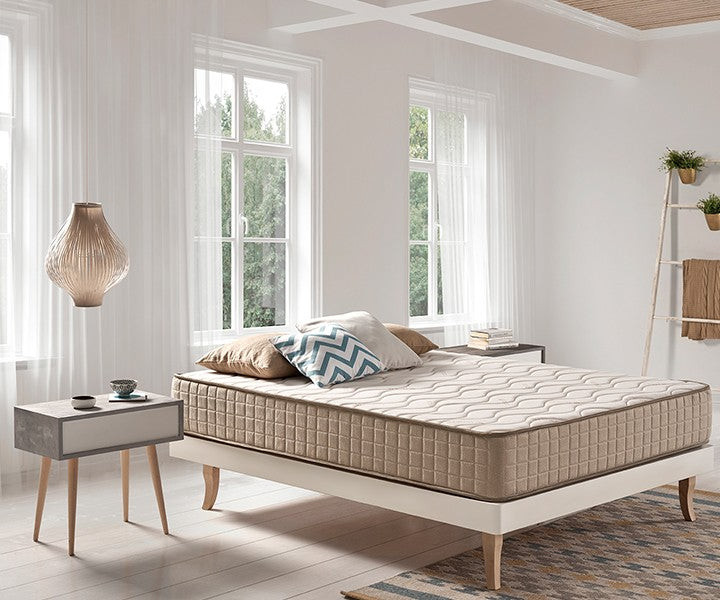 Les matelas en mousse à mémoire de forme sont relaxants car ils sont flexibles et améliorent l’adaptabilité des personnes de toutes morphologies. Ils n'exercent aucune pression sur aucun point pour obtenir un repos profond et continu. Il appartient à la nouvelle génération de matelas sans ressorts. Avec un tissu extensible TENCEL ® de haute qualité à grammage élevé et des fibres de pulpe de bois 100% naturelles et écologiques, le matelas Visco Luxury Eco Tencel régule la température corporelle en éliminant la chaleur et en atteignant une température idéale pour le repos. Caractéristiques techniques : • Épaisseur +/- 20 cm. • Fermeté : Moyenne-Élevée. • 4 cm de Visco GEL CONFORT ® haute densité avec tissu en mousse de repos. • Noyau orthopédique avec microparticules de carbone organique HR haute densité et indéformables. Structure à pores ouverts, régulant la meilleure température pour chaque saison de l'année. Ce matelas représente la nouvelle génération de matelas sans ressorts. La mousse que nous utilisons permet au matelas de toujours retrouver sa forme initiale. • Bande latérale : tissu brodé 4D Air Fresh. • Matelas multicouche pour un confort maximal. • Matelassage continu : chaque housse est fabriquée avec un motif qui utilise des formes géométriques élaborées sans espaces ni ruptures entre les coutures. En combinant les différentes couches de haute et de faible résilience, un effet similaire à l’apesanteur est obtenu. • Rembourrage inférieur : tissu tridimensionnel entrelacé 3D hautement respirant et doux au toucher. • Bordure : Couture de sécurité spéciale sur la bordure pour une meilleure compacité. Traitements et certificats de nos matelas : • Fonction hygiénique Sanitized® (spécialiste du traitement antimicrobien des textiles) qui protège les matelas contre la formation de moisissures et d'algues, réduit la présence d'acariens et offre une protection longue durée. • Anti-humidité : Il est fabriqué avec un tissu de dernière génération, qui permet une circulation d'air optimale, empêchant l'accumulation d'humidité et gardant le matelas ventilé, créant la température parfaite pendant que vous dormez. • Silencieux : Grâce à sa structure et sa composition, il ne produit aucun bruit lors des mouvements que notre corps effectue pendant son sommeil. • Indépendance du lit. • Nos matelas ont été créés pour respecter le bon alignement de notre colonne vertébrale pendant que nous nous reposons. • Tous les tissus que nous utilisons pour fabriquer ces matelas sont conformes à la réglementation OEKO-TEX® Standard 100 (produits sans substances nocives). Mode d'emploi, entretien et garantie. • Le matelas est expédié roulé et emballé sous vide. • Il est conseillé de ne pas utiliser le matelas dans les 10 heures suivant son déballage. • Protégez-le avec un étui ou un protecteur. Passez l'aspirateur au moins une fois par mois. N'oubliez pas que cela doit être sur une surface uniforme et ne pas laisser d'espaces qui pourraient provoquer des déformations. • Faites-le tourner fréquemment. Garantie 2 ans. Fabriqué en Espagne.