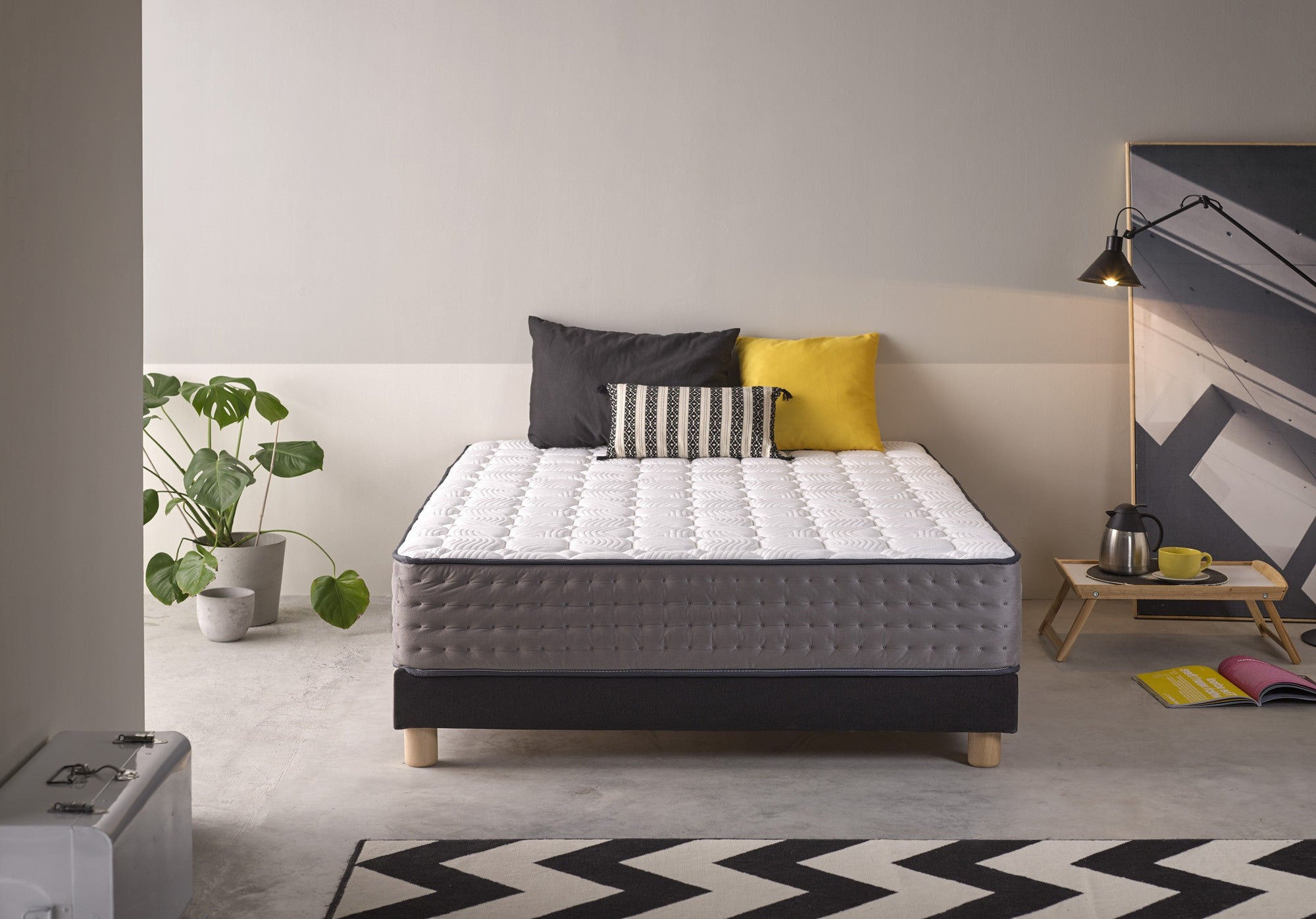 Le matelas exclusif Grafeno Premium combine un système multicouche perforé hautement adaptable et haute densité, offrant un grand confort. La fermeté de son noyau spécial indéformable Bio Nature fait de ce matelas un luxe pour le repos. Rembourrage spécial avec couche fraîche intégrale en visco-graphène à pores ouverts de 5 cm plus supersoft. Noyau éco-nature à cellules ouvertes haute densité pour une respirabilité maximale. Matériau léger haute densité Hi Sense extrait du graphite qui augmente l'adaptabilité du matelas et le passage de l'air Haute conductivité thermique : la chaleur retenue par d'autres matériaux est dissipée par le graphène, permettant un repos sans aucun type d'accumulation de température Antibactérien Tissu extensible de haute qualité et extrême douceur au toucher. Idéal pour les peaux sensibles ou délicates Visco Grafeno Fresh (viscoélastique moulé) : 5 cm plus super doux Agit comme une seconde peau, régulant la température corporelle et maintenant l'équilibre hydrique Avec des propriétés thermosensibles et hautement réactives sous pression, il permet de maintenir la posture naturelle du dos Aide à réduire les tensions musculaires et à favoriser une circulation sanguine adéquate Côtés renforcés et tissu velouté VELOURS à grammage élevé et rembourrage matelassé de luxe Fermé par une bordure haute résistance et des coutures renforcées Système antifongique, anti-acarien, antiallergique et antistatique Certificat de qualité mondial Oeko Tex Fiche technique : Hauteur 30cm +/- 2 cm. Effet ionisant Durable et résistant Enroulable anatomique Silencieux Matériaux 100% respirants Adapté à l'hiver et à l'été Livré enroulé Fabriqué en Espagne