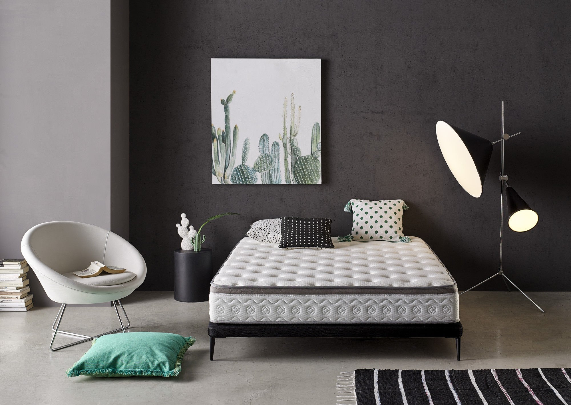 Matelas fabriqué avec plusieurs couches pour éliminer les points de pression sur les 11 zones de repos, offrant un soutien parfait à notre corps avec une indépendance totale des lits. Rembourrés de fibres naturelles écologiques hypoallergéniques, ils absorbent l'humidité et éliminent la chaleur. Caractéristiques techniques • Hauteur : 28 +/-2 • Fermeté : Moyenne-Élevée. • Rembourrage supérieur : 4 centimètres de visco + supersoft • Noyau : Haute Densité HR : Structure à pores ouverts, régulant la meilleure température pour chaque saison de l'année. Ce matelas représente la nouvelle génération de matelas sans ressorts. La mousse que nous utilisons permet au matelas de toujours retrouver sa forme initiale. • Platabanda : Fausse topper. • Rembourrage supérieur d'une housse à l'autre : Chaque housse est fabriquée individuellement afin que le motif soit centré et que les coutures aient une plus grande profondeur, obtenant un volume maximal et une répartition correcte de la pression et minimisant les mouvements nocturnes. C'est pour cette raison que ce type de rembourrage n'est utilisé que dans les matelas haut de gamme. • Rembourrage inférieur : tissu tridimensionnel entrelacé 3D hautement respirant et doux au toucher. • Bordure : Couture de sécurité spéciale sur la bordure pour une meilleure compacité. Traitements et certificats de nos matelas : • Fonction hygiénique Sanitized® (spécialiste du traitement antimicrobien des textiles) qui protège les matelas contre la formation de moisissures et d'algues, réduit la présence d'acariens et offre une protection longue durée. • Anti-humidité : Il est fabriqué avec un tissu de dernière génération, qui permet une circulation d'air optimale, empêchant l'accumulation d'humidité et gardant le matelas ventilé, créant la température parfaite pendant que vous dormez. • Silencieux : Grâce à sa structure et sa composition, il ne produit aucun bruit lors des mouvements que notre corps effectue pendant son sommeil. • Indépendance du lit. • Nos matelas ont été créés pour respecter le bon alignement de notre colonne vertébrale pendant que nous nous reposons. • Tous les tissus que nous utilisons pour fabriquer ces matelas sont conformes à la réglementation OEKO-TEX® Standard 100 (produits sans substances nocives). Mode d'emploi, entretien et garantie. • Le matelas est expédié roulé et emballé sous vide. • Il est conseillé de ne pas utiliser le matelas dans les 10 heures suivant son déballage. • Protégez-le avec un étui ou un protecteur. Passez l'aspirateur au moins une fois par mois. N'oubliez pas que cela doit être sur une surface uniforme et ne pas laisser d'espaces qui pourraient provoquer des déformations. • Faites-le tourner fréquemment. Garantie 2 ans. Fabriqué en Espagne.