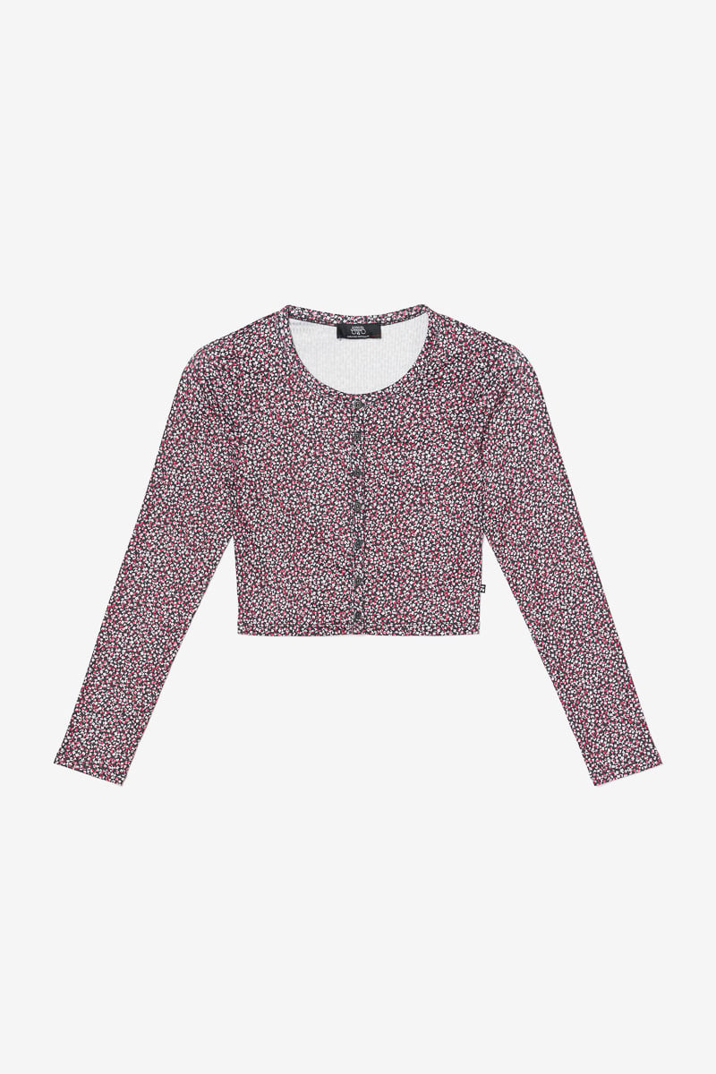 Le Temps des Cerises - Cardigan Uppergi noir à motif fleuri rose