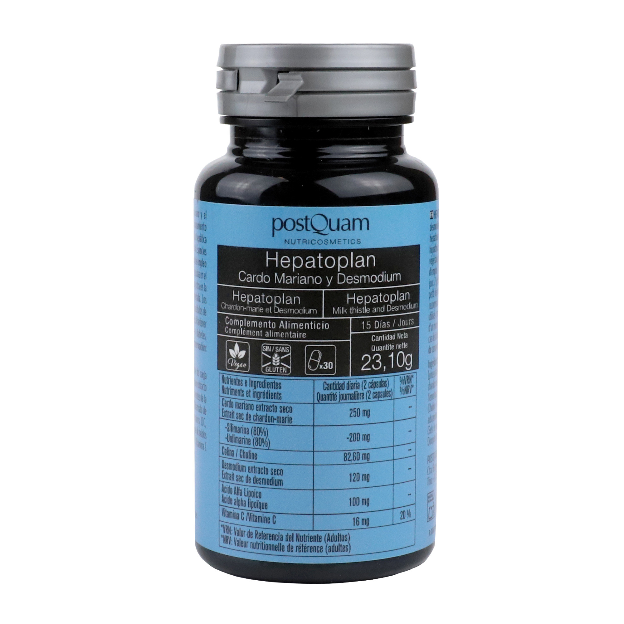 Description : Complément alimentaire à base d'épices végétales, de choline, d'acide alpha-lipoïque et de vitamine C. Allégation : CONFORT HÉPATIQUE. Le chardon-marie et le desmodium aident à protéger et à soutenir la fonction hépatique normale. La choline aide à maintenir une fonction hépatique normale. Ingrédients clés : Chardon-Marie et Desmodium. Mode d'emploi : Prendre 2 gélules par jour. 2 gélules au petit déjeuner ou, réparties dans la journée, une au petit déjeuner et une au dîner. Ne pas dépasser la dose journalière recommandée. Les compléments alimentaires ne doivent pas être utilisés comme substitut d'un régime alimentaire varié et équilibré et d'un mode de vie sain. Tenir hors de portée des enfants. Déconseillé en cas de diabète, de grossesse et d'allaitement. Étiquettes : Sans gluten/ Vegan/ 2 par jour. Quantité nette : 23,10 g. Contient 30 gélules végétales de 770 mg. Ingrédients : Amidon de maïs (Amidon de maïs, Agent de charge [Phosphates de calcium], Agent de charge [Cellulose]), Extrait sec de chardon-marie (Silybum marianum L., graine), Composants de l'enveloppe de la gélule (Hydroxypropyl méthylcellulose), Choline (Choline bitartrate), Extrait sec de Desmodium (Desmodium adscendens DC, partie aérienne), Acide alpha-lipoïque, Anti-agglomérants (Sels de magnésium d'acides gras, Monoglycérides d'acides gras et Dioxyde de silicium), Vitamine C (Acide L-ascorbique).