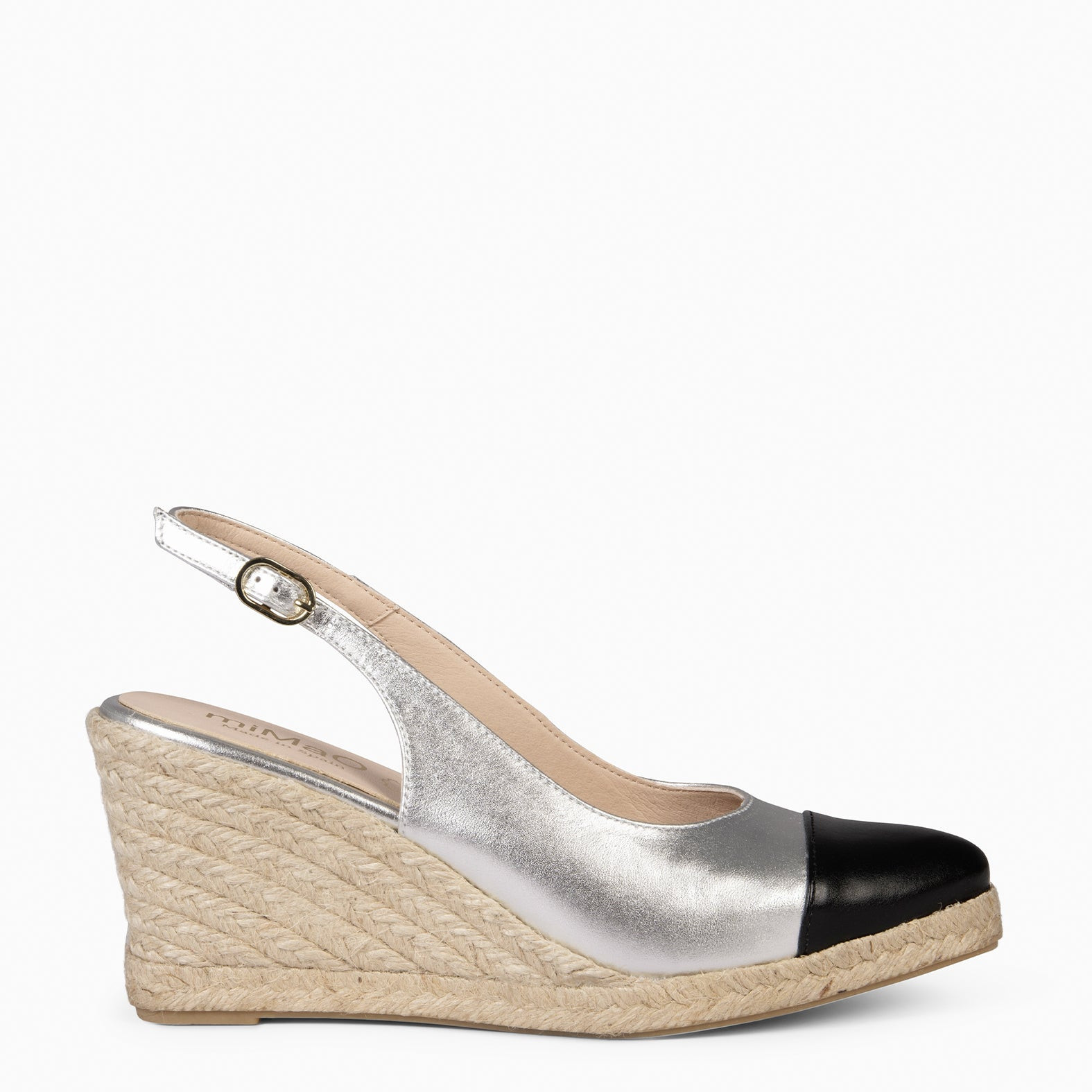 BIARRITZ - Espadrilles slingbacks bicolores ARGENTÉ et NOIR