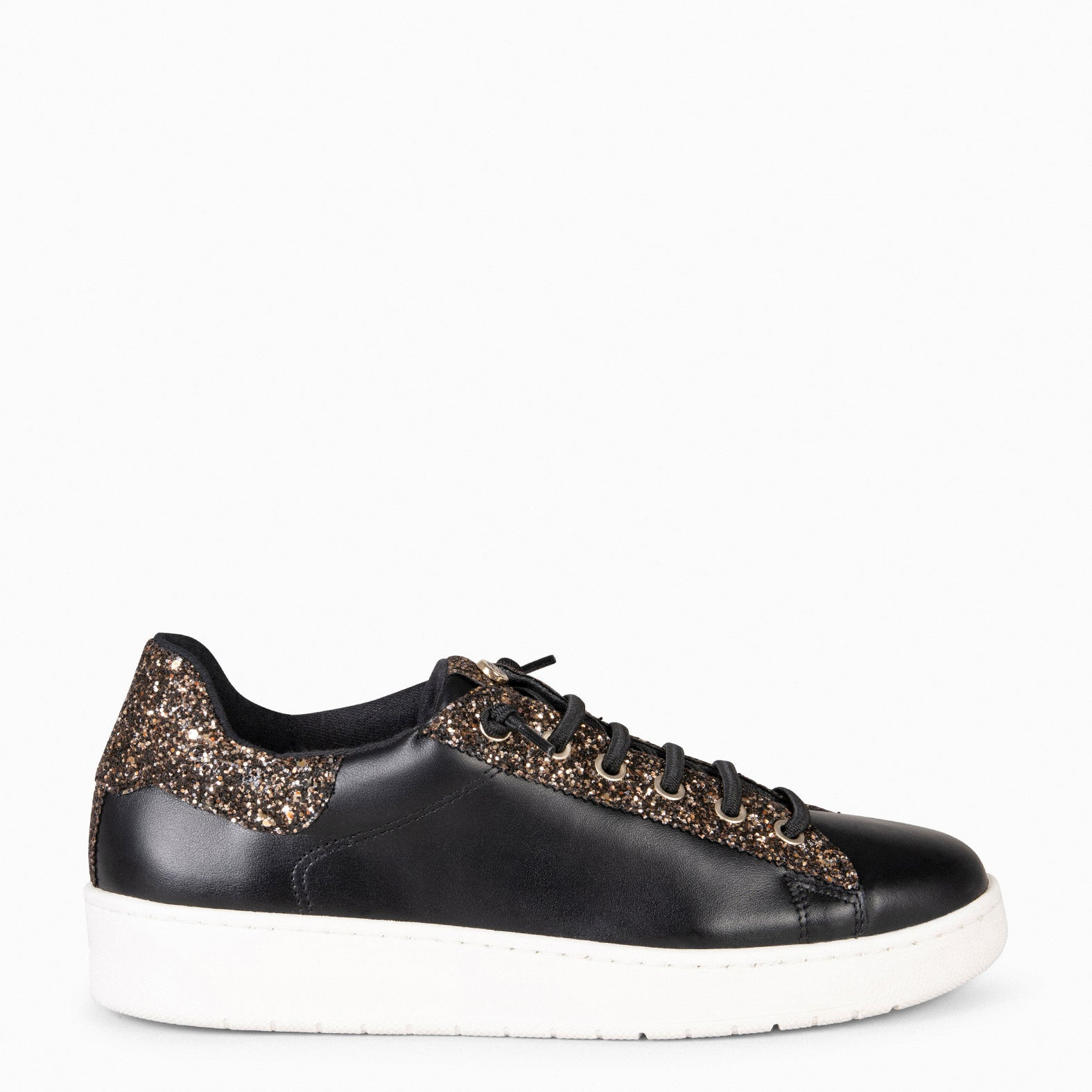 TOULOUSE – Baskets à lacets élastiques NOIR GLITTER