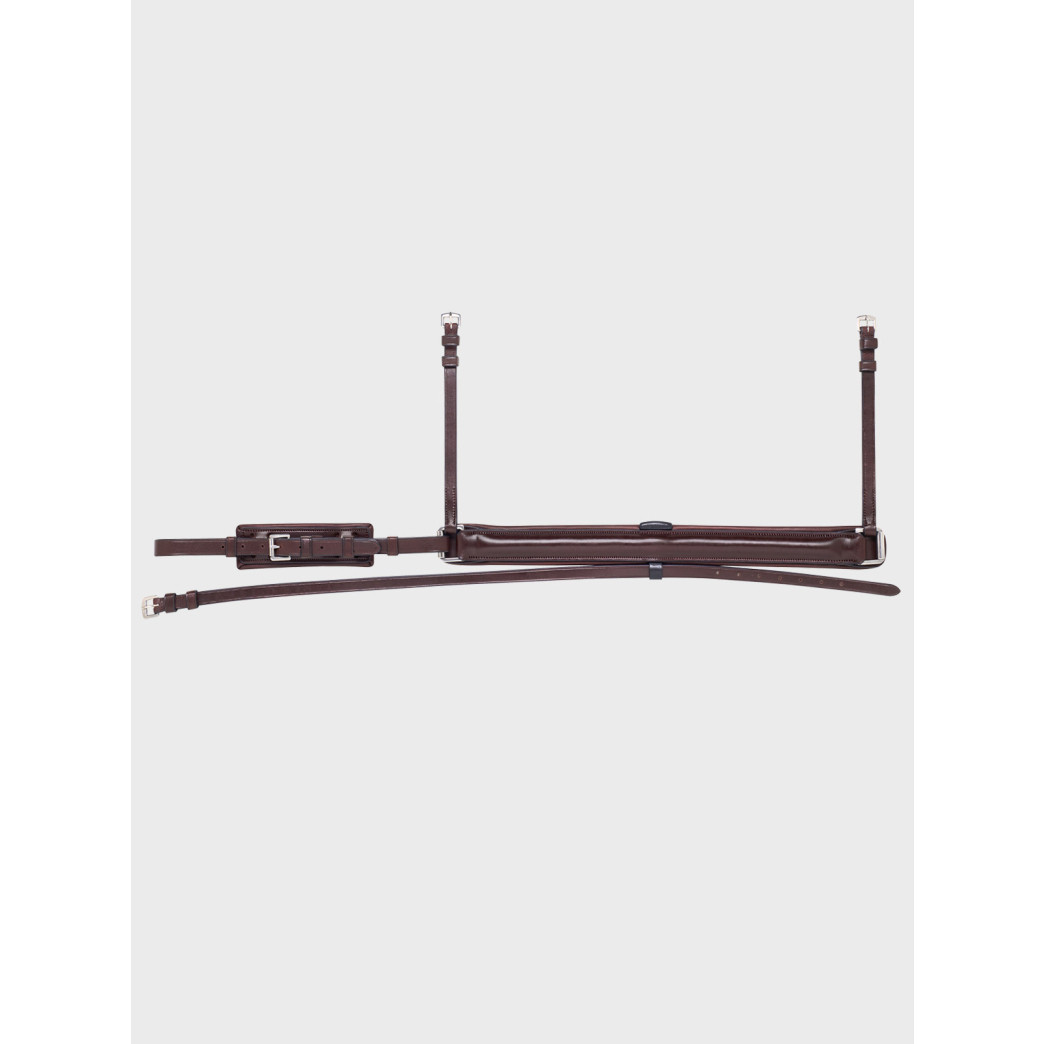 Muserolle suédoise avec doublure assortie et boucle en caoutchouc amovible pour le passage du noseband. Conçue avec une surface plus large qui permet de réduire la pression exercée sur les terminaisons nerveuses sensibles. Légèrement rembourrée pour plus de confort. Disponible en noir et en marron, tailles cob et cheval.