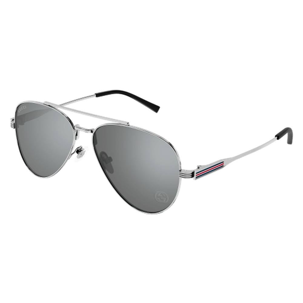 Styles en métal léger avec une touche élégante et des détails Web sur les branches. Formulaire pilote. Logo Gucci avec détail web émaillé sur les lignes gravées de la branche. Des couleurs métalliques masculines, élégantes et commerciales, associées à des verres lisses et modernes.