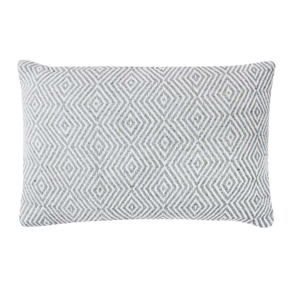 Coussin ethnique motif ikat blanc et gris