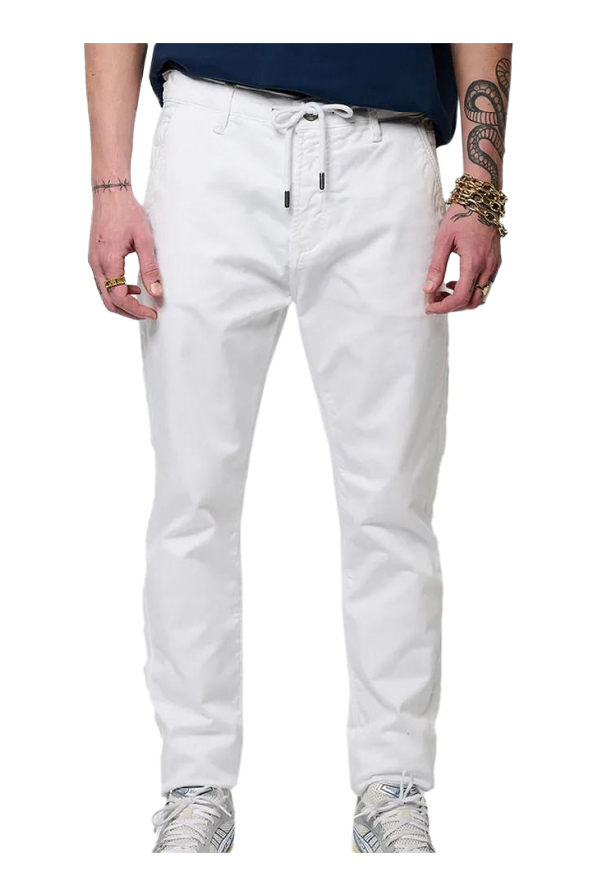 Composition : 98% coton 2% elasthanneLe IRWIK est un chino coupe relaxed cropped, taille normal. Pantalon coupe relaxed cropped Chaîne amovible Braguette zippée avec cordon de serrage 2 poches italiennes 1 poche ticket avec logo métallique Jacron estampillé 2 poches à rabat boutonnées au dos Conseil entretien : Laver séparément au premier lavage Laver à l'envers. Laver avec des couleurs similaires. Tons: les BLANCS.