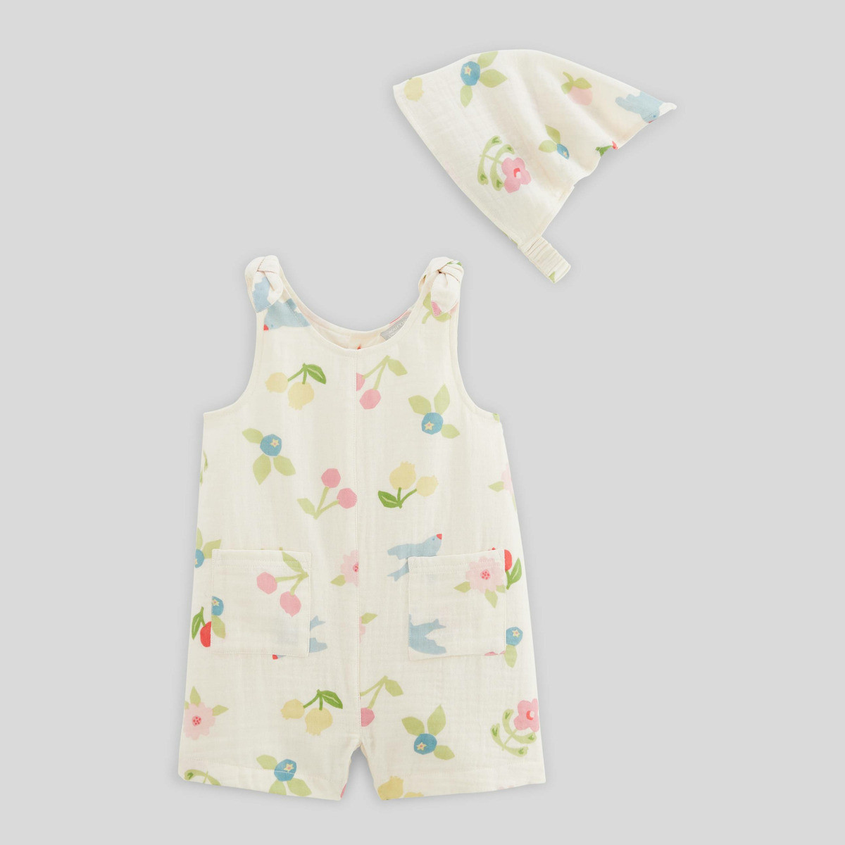 Salopette courte avec fichu imprimés en gaze de coton en coton BIO GOTS - BOUT'CHOU