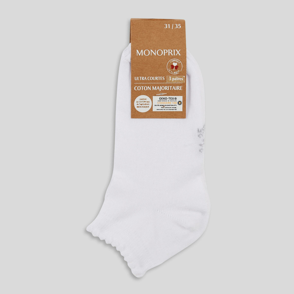 Lot de 3 paires de socquettes à bord cocotte contenant du coton BIO - MONOPRIX