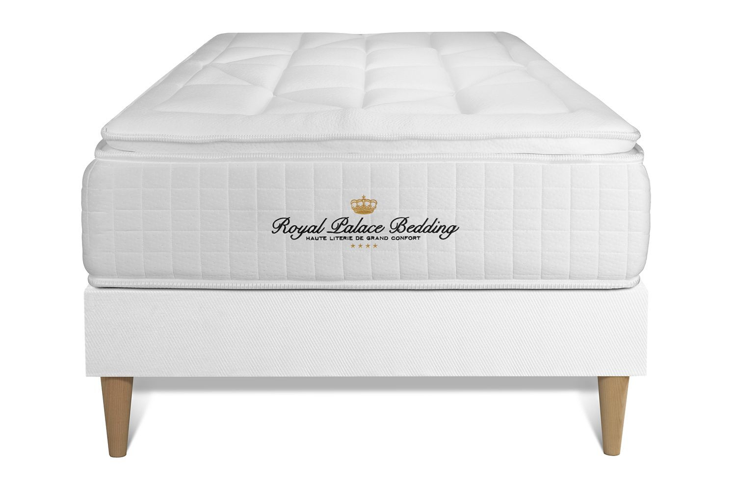 Information sur l'offre : L'ensemble GEORGE V de la marque Royal Palace Bedding est composé d'une âme en ressorts ensachés avec 7 zones de conforts procurant un soutien très précis point par point. Il s'agit de l'un de nos matelas les plus plebiscité, c'est un mariage parfait de l'ensemble des technologies que nous maîtrisons pour vous proposer une expérience de sommeil unique. Vous bénéficierez d'un soutien ferme et d'un accueil enveloppant > grâce à son surmatelas intégré avec mousse à mémoire de forme. Sa maxi épaisseur de 29 cm vous offre un sommeil plus profond et plus réparateur. Son plus, ses ressorts ensachés pour une parfaite indépendance de couchage et une excellente ventilation de l'air. Magnifiquement conçu, il vous offrira un confort unique digne des plus grands palaces.