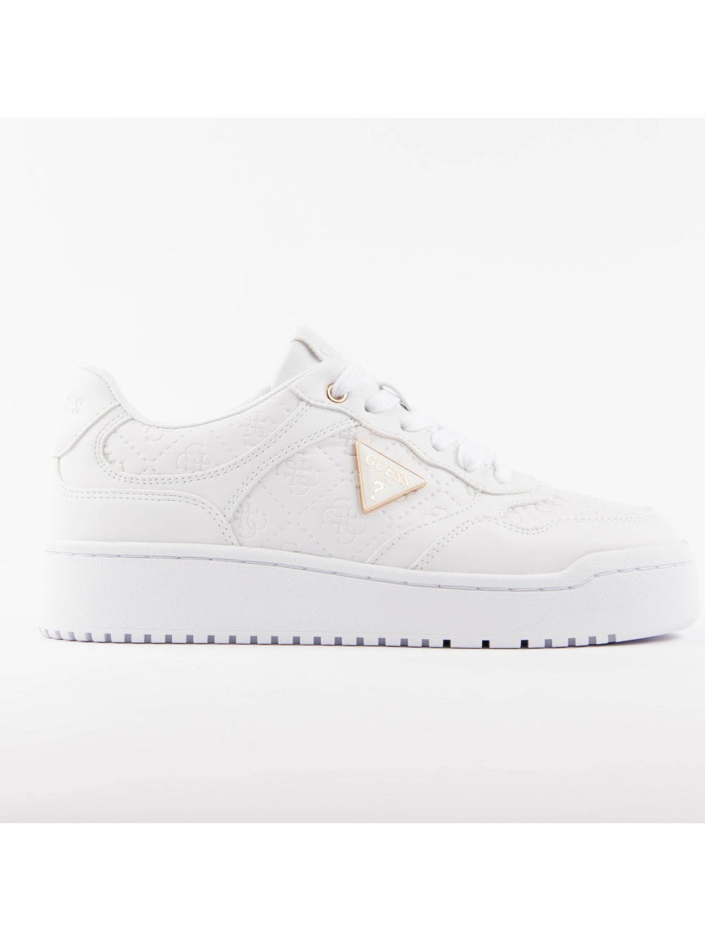 Basket Guess Miriam Femme Blanc Synthétique. Authentique Chaussure de la marque Guess - design streetwear/sportswear de Guess - Guess pour Femme fashion, parfait pour la vie de tous les jours - Basket Guess de couleur Blanc s'associe parfaitement avec le reste de votre dressing - matiere Synthétique confortable - Lacets classic - Miriam - Synthétique