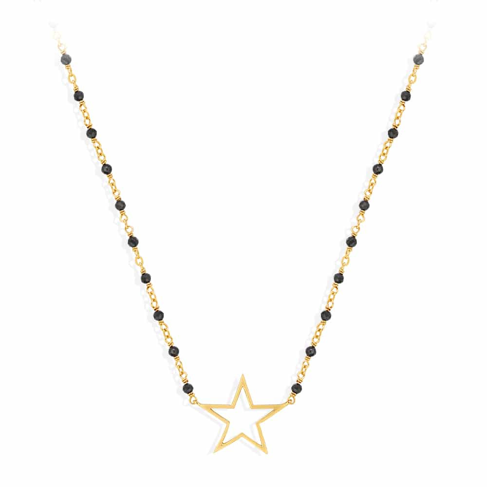ORUS BIJOUX - Collier argent doré étoile et pierre spinelle noire