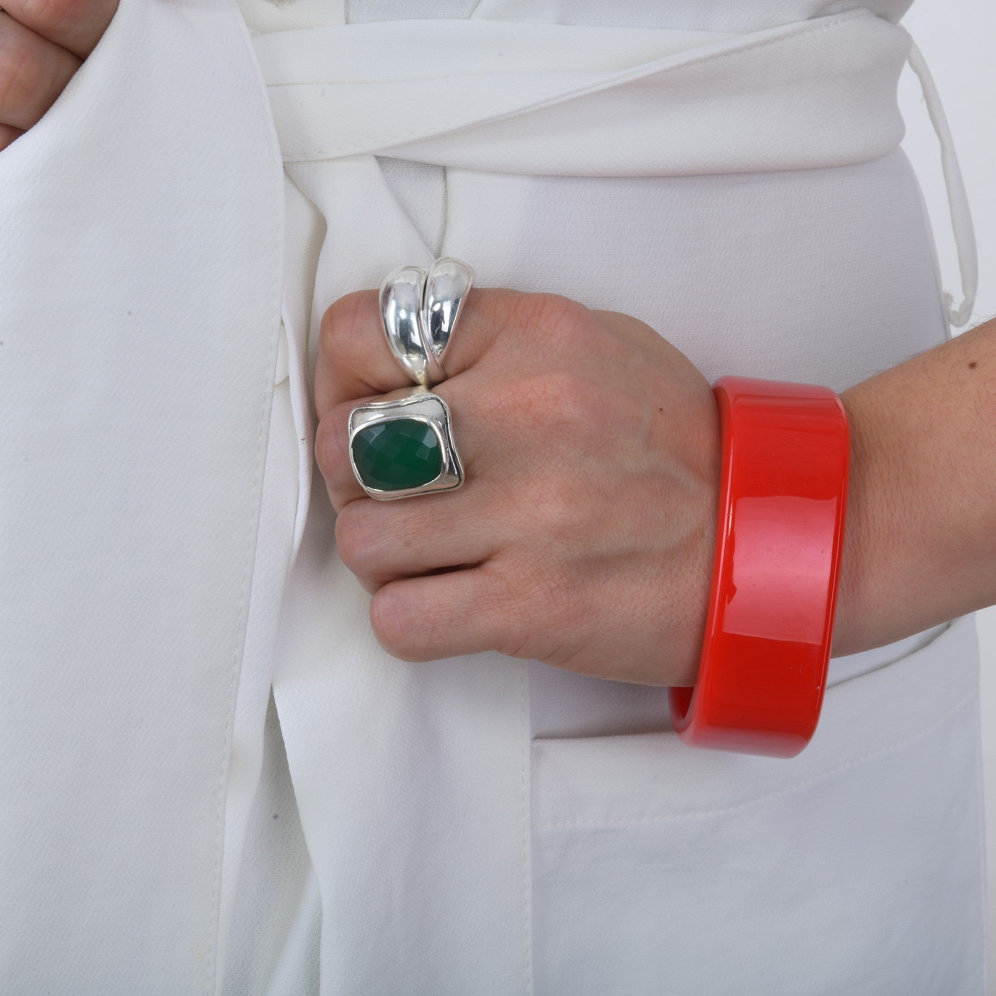 Retour aux années 70 avec le Bracelet Jonc Seventies Georgette. Ce bijou coloré, en acétate, arbore un éclat rouge vibrant qui illuminera votre garde-robe estivale. Sa forme jonc, emblématique des accessoires rétro, allie modernité et nostalgie, en faisant un choix parfait pour celles qui souhaitent ajouter une touche vitaminée à leur style.
