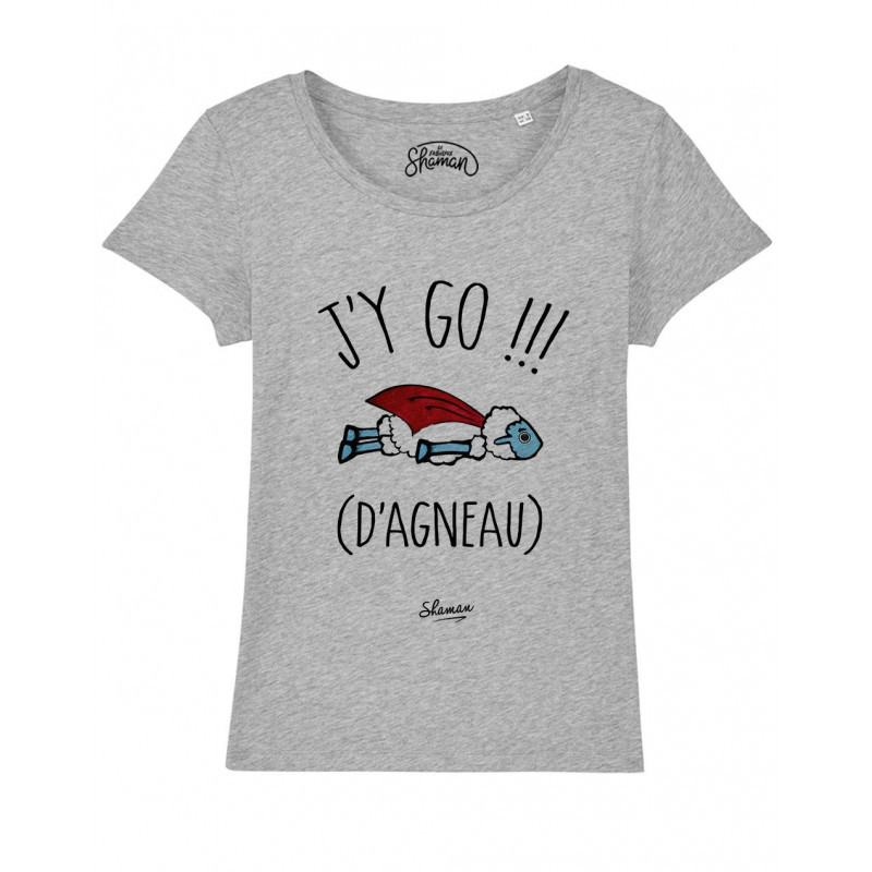 Tshirt Blanc de la marque Shaman. Le motif J'Y Go D'Agneau est imprimé en France dans notre atelier à Toulouse sur un Tshirt de qualité très confortable 100% coton peigné issu de l'agriculture biologique enrichi d'un traitement d'enzyme pour un toucher tout doux. Certifié OCS (Organic Content Standard) et Oeko Tex Standard 100. T-shirt de qualité imprimé avec amour en France.