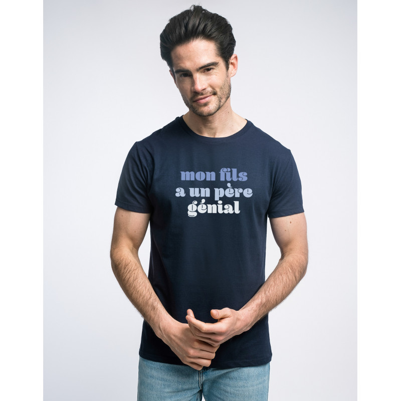 Tshirt Blanc de la marque Ma Petite Tribu. Un cadeau parfait pour Papa. Le motif Mon Fils A Un Père Génial est imprimé en France dans notre atelier à Toulouse sur un Tshirt de qualité très confortable 100% coton peigné issu de l'agriculture biologique enrichi d'un traitement d'enzyme pour un toucher tout doux. Certifié OCS (Organic Content Standard) et Oeko Tex Standard 100. T-shirt de qualité imprimé avec amour en France.