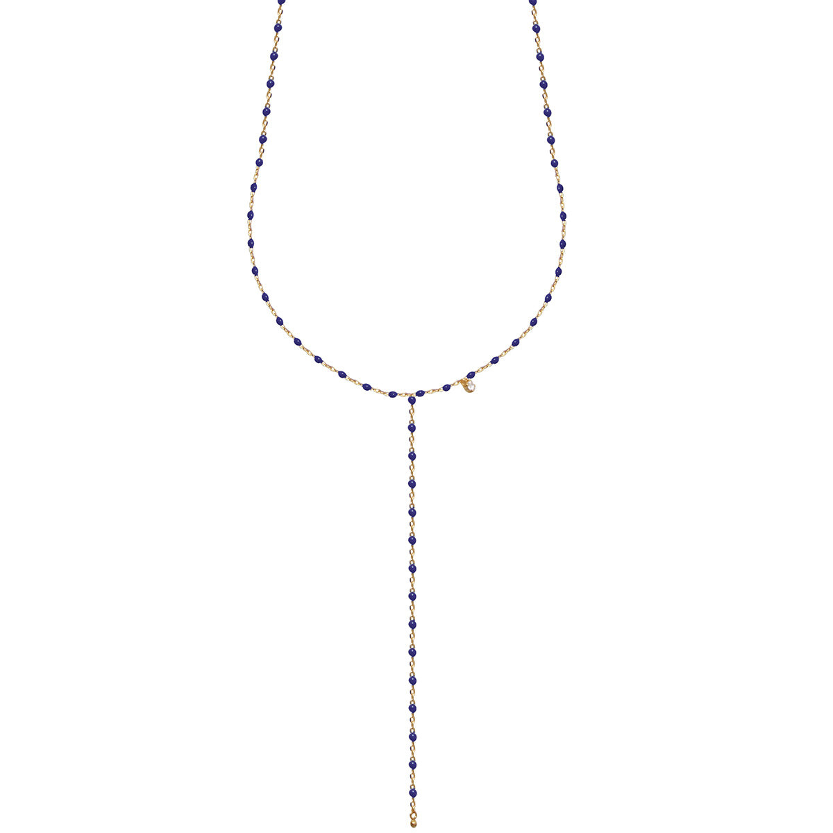 Collier Mimi Y Bleu est un bijou délicat et élégant, conçu pour apporter une touche de sophistication à votre style. Fabriqué en argent 925‰ doré à l'or 18Kt, il se distingue par sa chaîne alternée forçat ovale et ses boules de 1mm émaillées en bleu, offrant un contraste saisissant et une allure moderne.