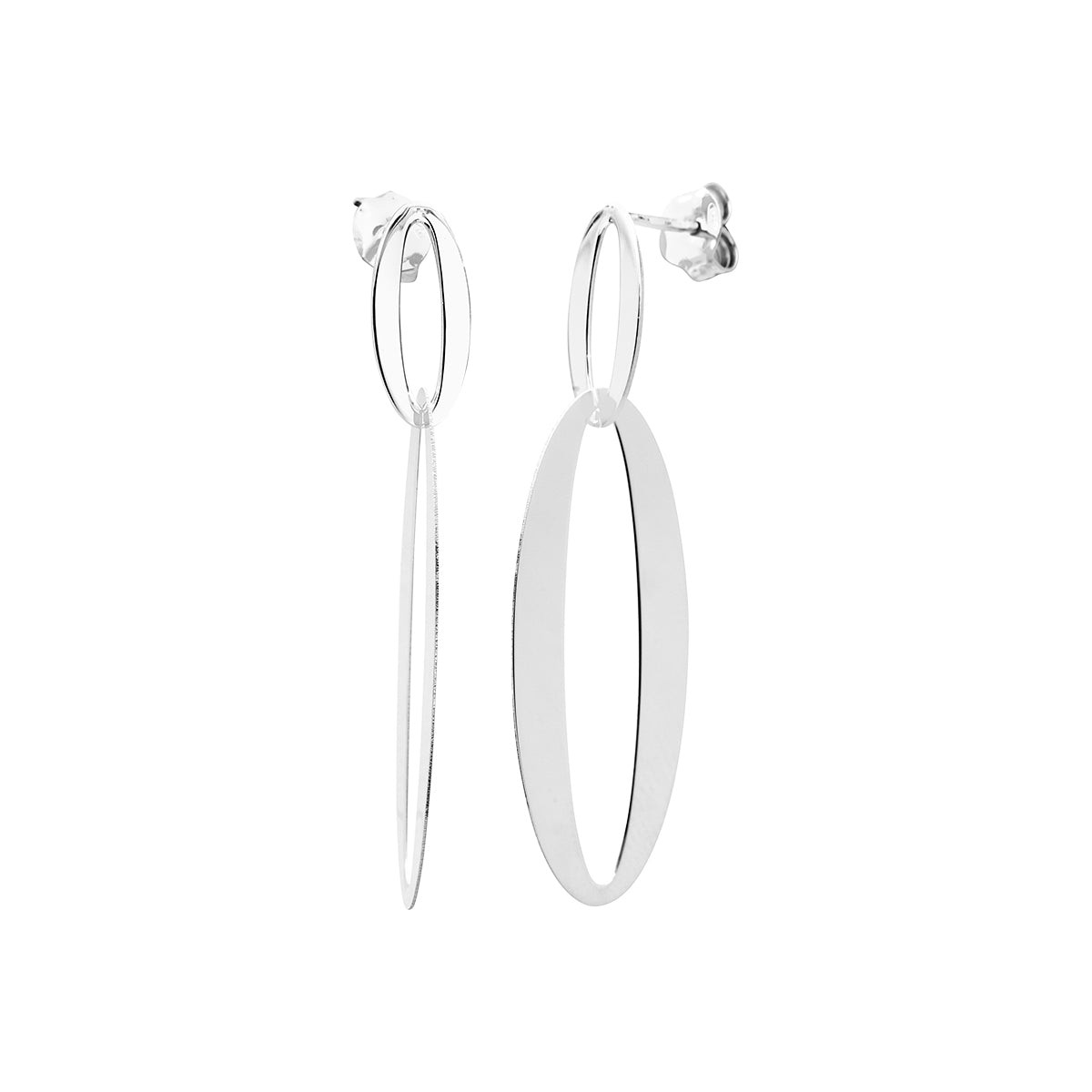 Avec une hauteur de 5 cm, ces boucles d'oreilles présentent une forme allongée et géométrique, alliant cercles et ovales. Leur structure en deux parties leur confère un aspect dynamique et contemporain, parfait pour celles qui recherchent à la fois élégance et modernité.