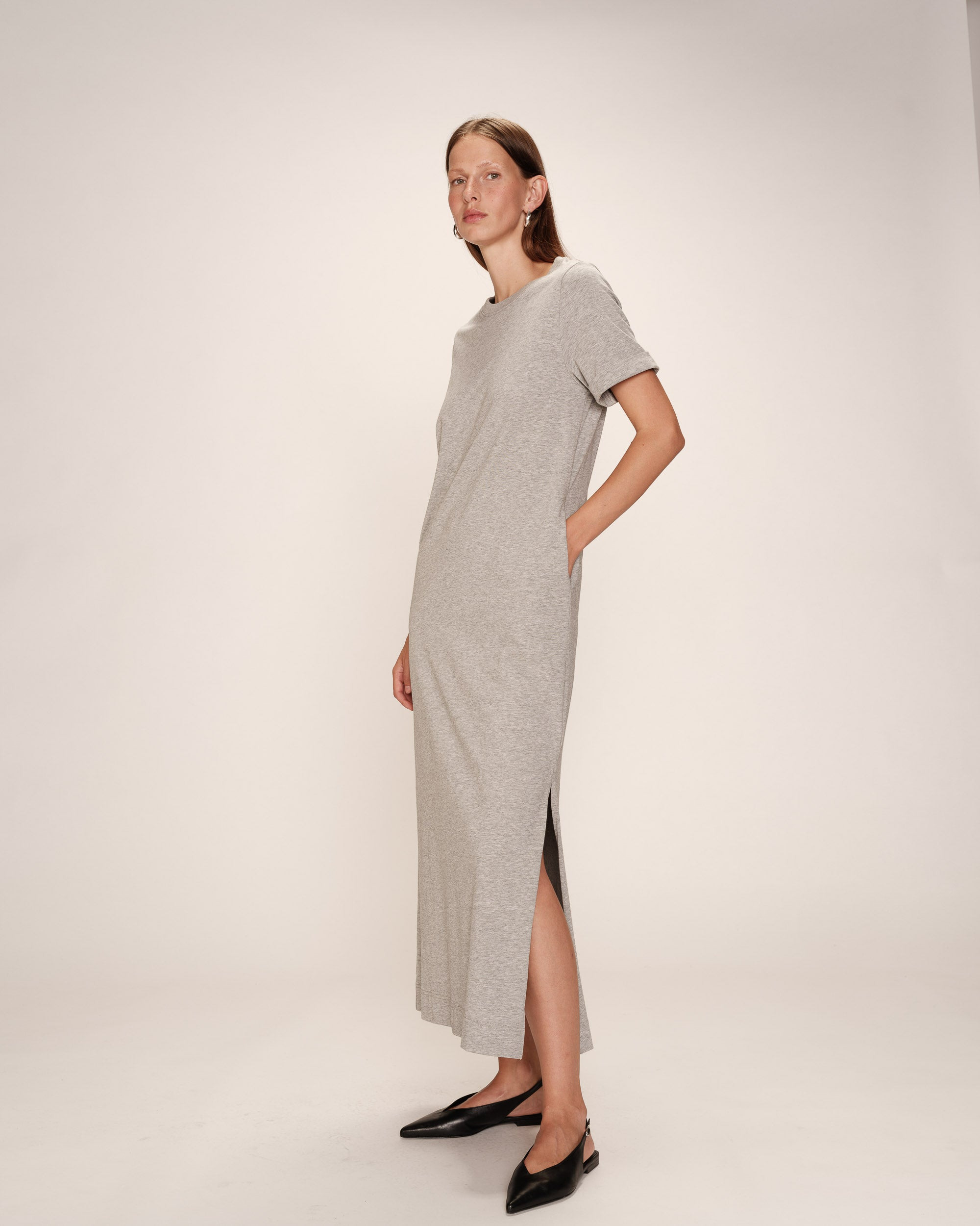 Robe longue manches courtes gris Rosalie