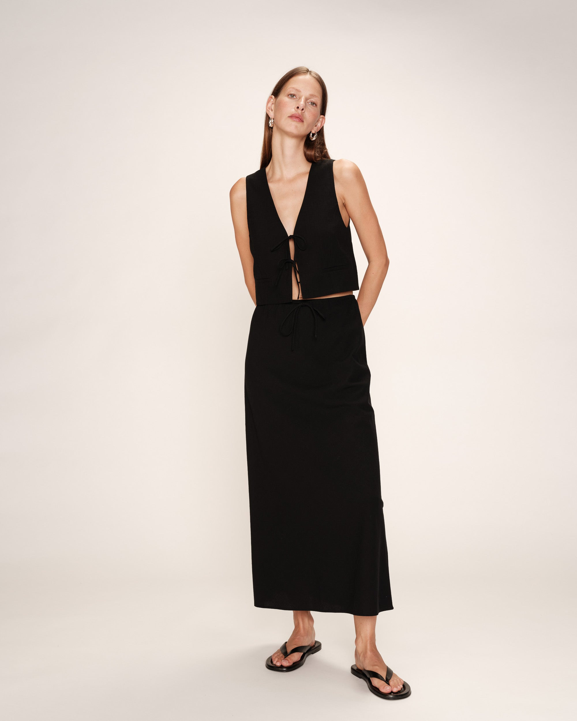 Jupe longue en lin et coton noir Rousse