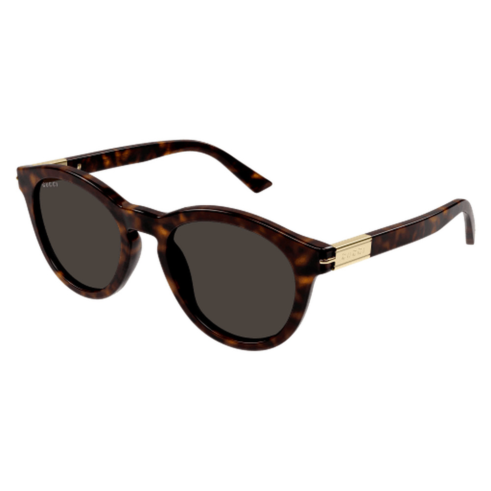Concept facile à utiliser, la ligne GG brille par sa simplicité grâce à une construction simple et élégante, ornée d'un détail métallique sur la branche. Forme arrondie en acétate avec insert en métal. Logo Gucci sur les branches, rehaussé par un détail métallique dans le coin. Palette masculine sombre contrastant avec les détails métalliques et combinée avec des verres foncés lisses.